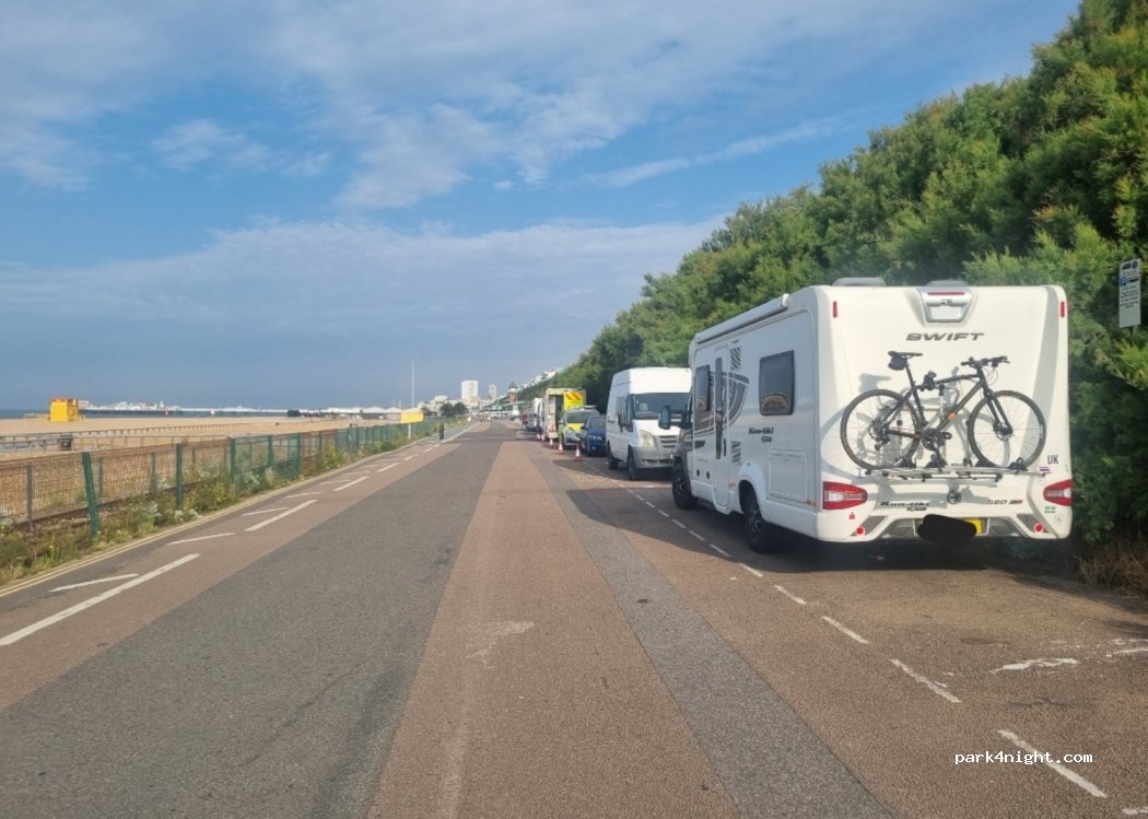 Great little park up close to Brighton & the mariner. Spent 2 nights here, very quiet at night. Free from 6pm - 10am. park up around half way down, further down may be a bit noisier as you get closer to the mariner, bars and restaurants. Look after it it’s a bit of a gem so close to the city and FREE at night ?