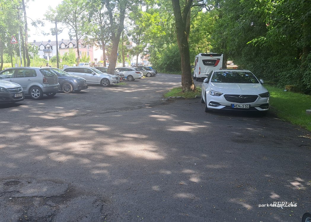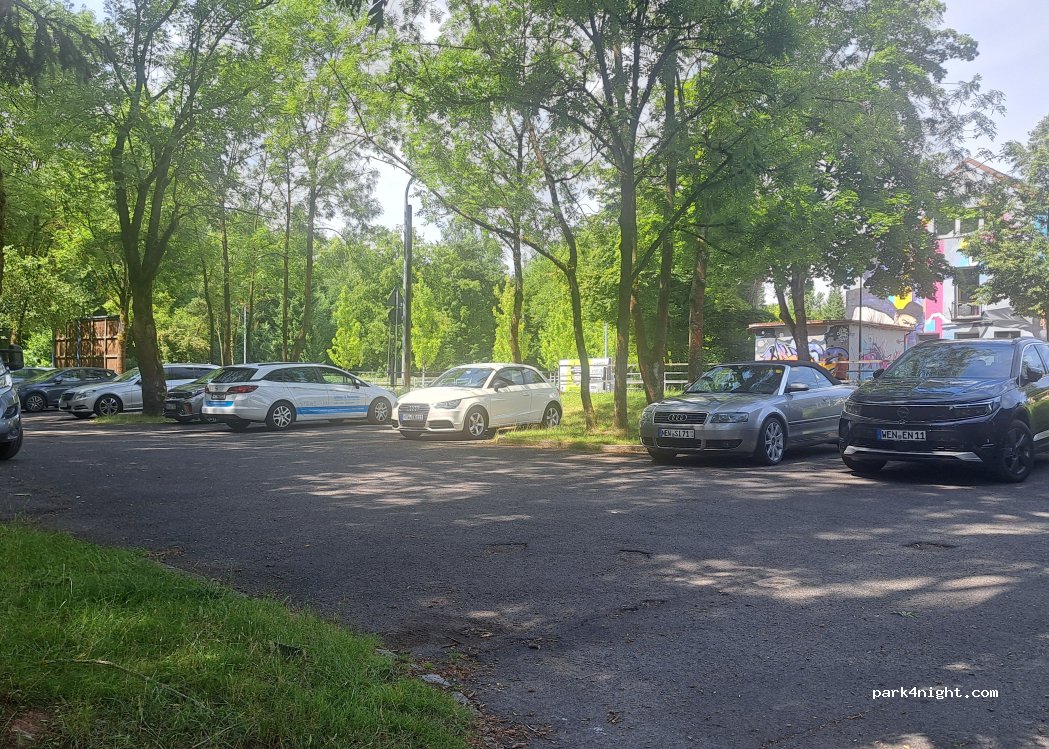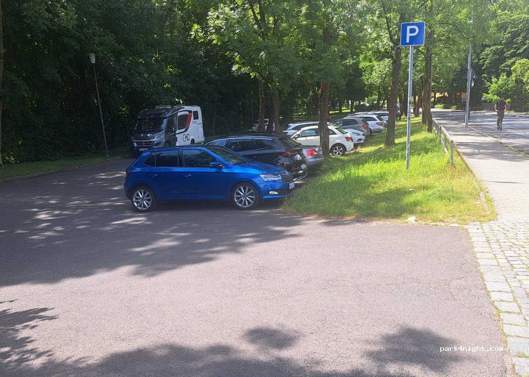Parking lot next to the youth center with direct access to the pedestrian zone (pedestrian underpass). Skateboard track, kinetics facility, soccer field, youth center in the park. No RV infrastructure but free overnight.