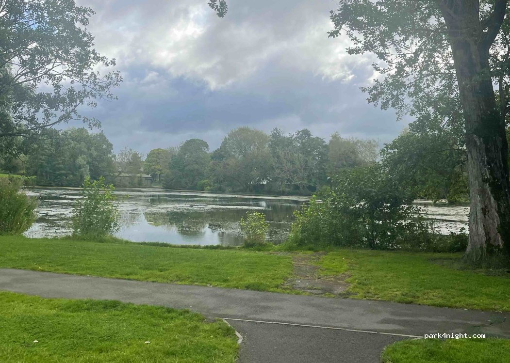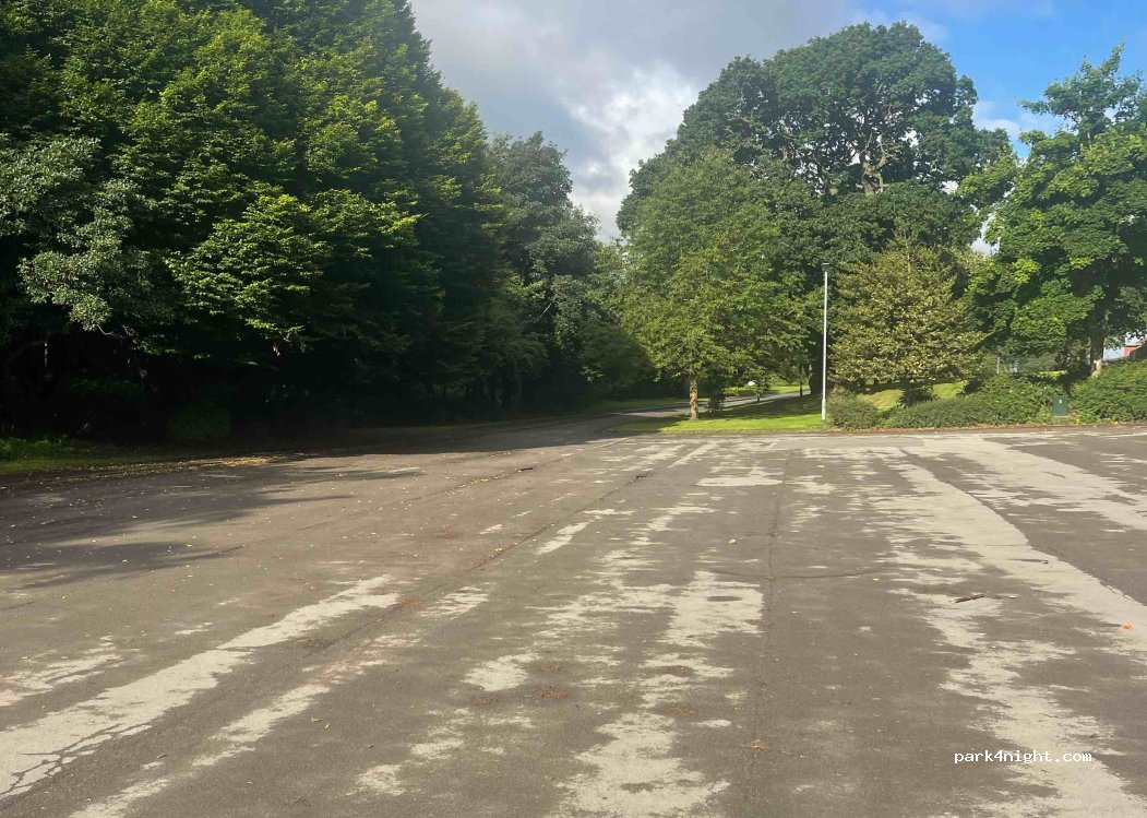 parking d'un parc très agréable. il y a quelques joggers et promeneurs de chiens mais rien de gênant.