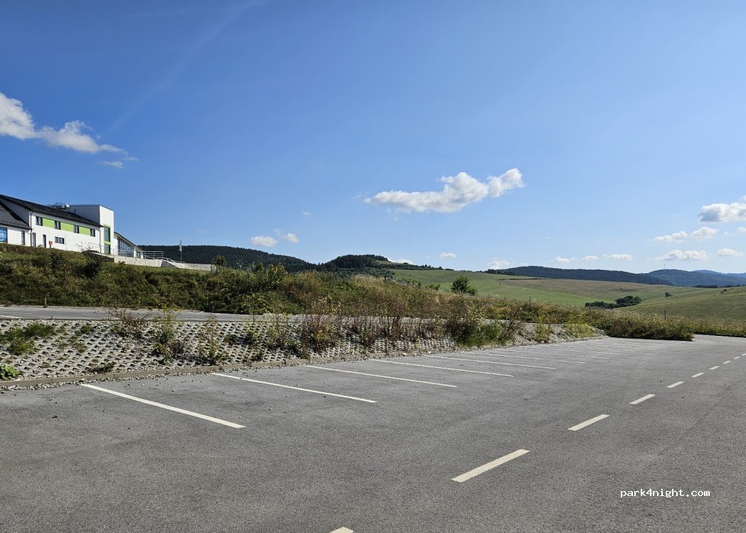 Großer Parkplatz, leicht schräg, Asphalt , kein Schatten