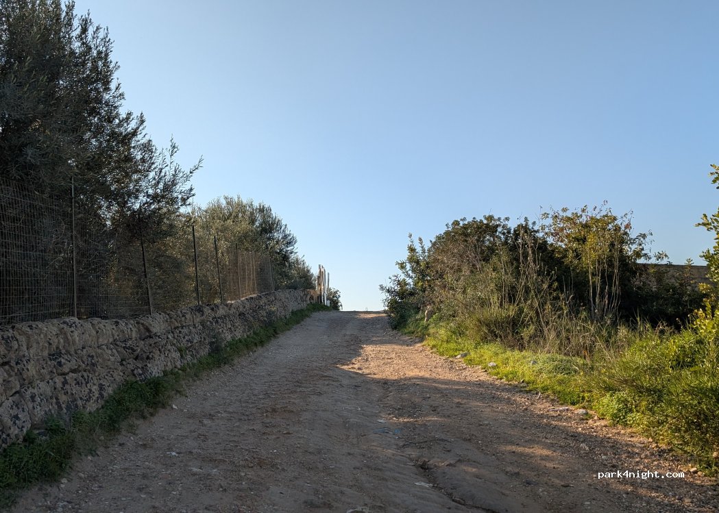 parcheggio in mezzo agli olivi, col nostro t4 nessun problema per arrivare, ad oggi chiedono 15€ per 24h, ma puoi contattare e alla fine con 20€ siamo rimasti 3 notti e due giorni, senza usare elettricità perché abbiamo il pannello. se hai un cane puoi lasciarlo qui per andare alla riserva di vendicari