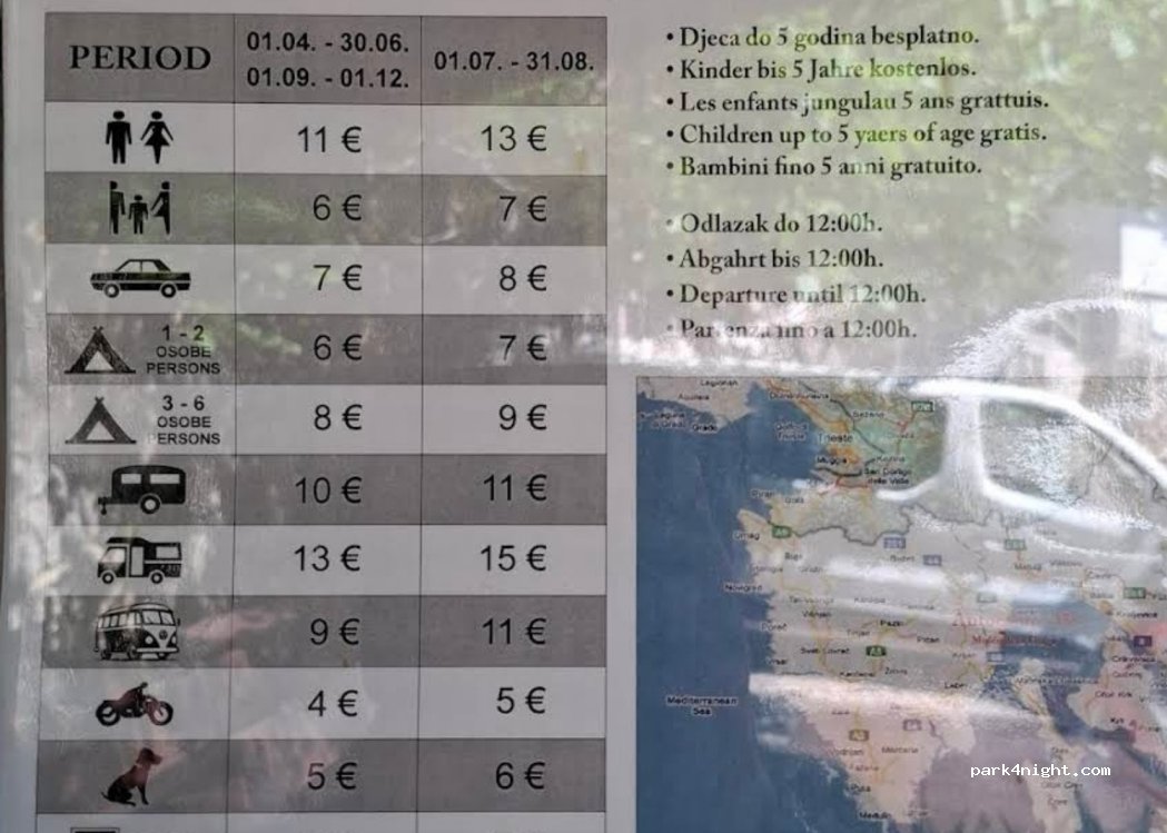 La señora Erica es muy amable y acogedora, al llegar me proporcionó un rollo de papel higiénico y una bolsa de basura. El mini camping Jasna Dundovic 3 sterren está muy limpio en todas sus zonas y durante la noche es tranquilo y aireado, con muchas zonas de sombra. Hay una zona con parrilla y mesas de picnic cubiertas donde se puede comer y cocinar libremente. La entrada es un poco estrecha, pero no encontramos ninguna dificultad con una rampa de 7 metros. También hay una zona para lavar platos y ropa sucia, una pequeña lavadora y posibilidad de cargar agua. ATENCIÓN SÓLO PUEDES PAGAR EN EFECTIVO.