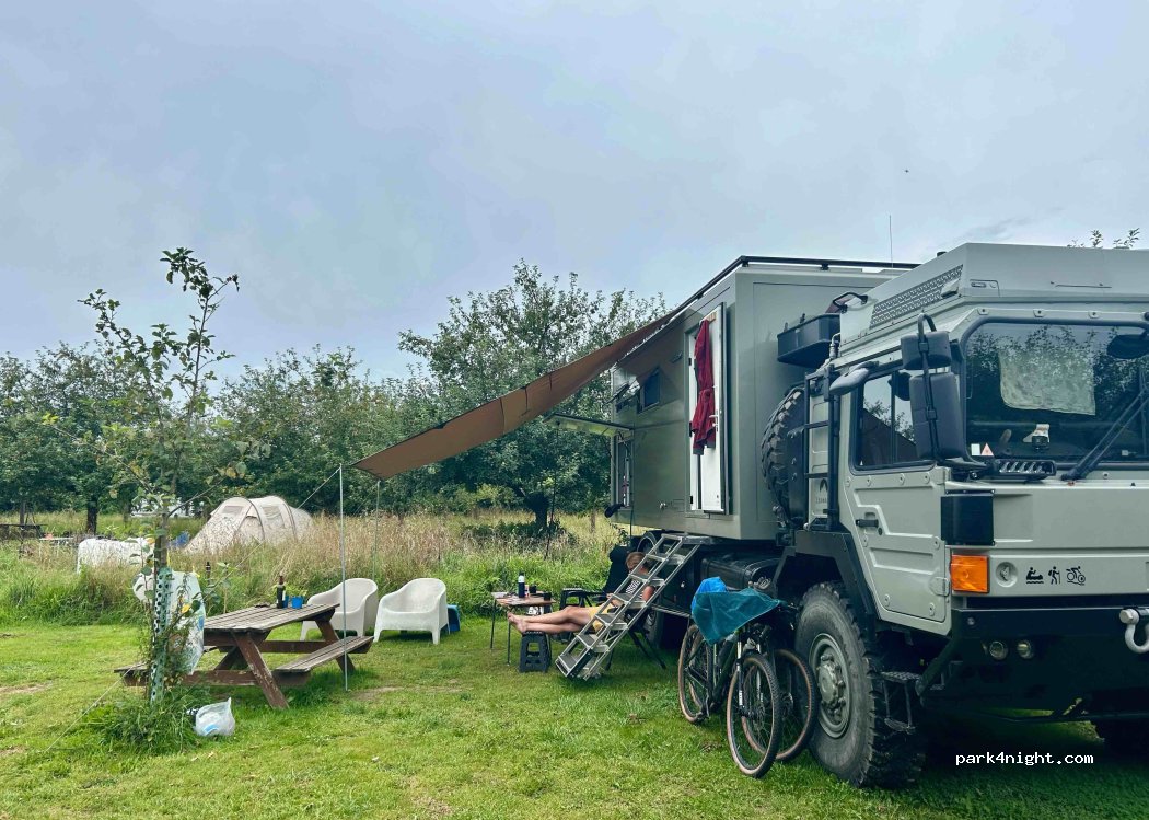 Modern Hippy Campsite. Great place to spend a couple of nights. Relax atmosphere. You camp in an orchard in a lush garden. Lots of green. And lots of places where you can relax and make your own campfire. There is a shop for (homemade) groceries.