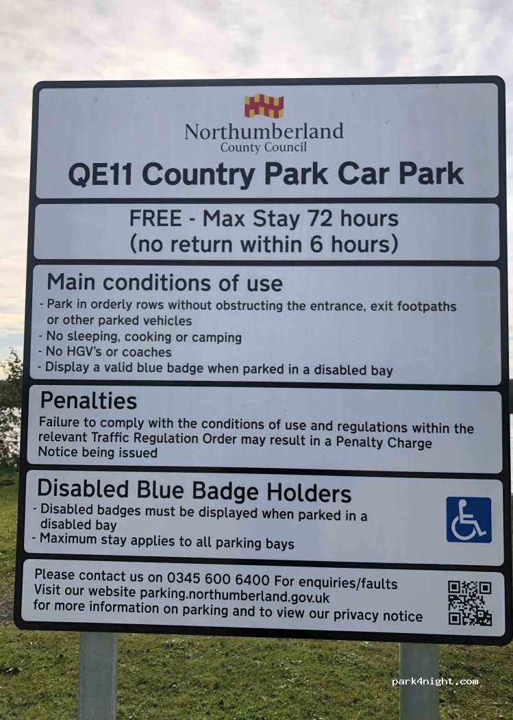 Can no longer park overnight. Northumberland council parking restrictions in place.