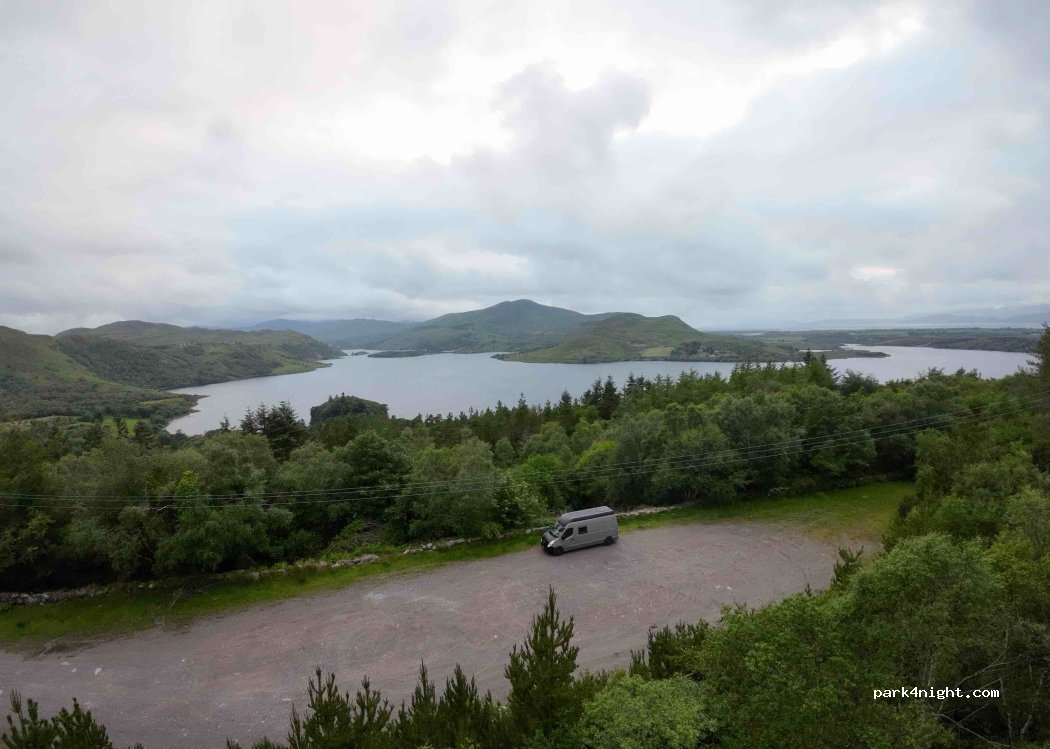 Assez difficile d’accès mais possible en van de 6m. Permet d’accéder à une super balade facile de 20-30 minutes pour y. Point de vue magnifique sur le lough caragh.