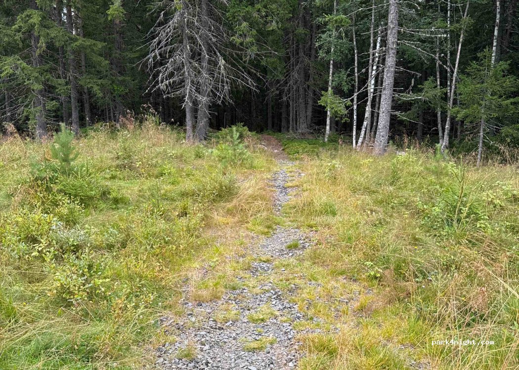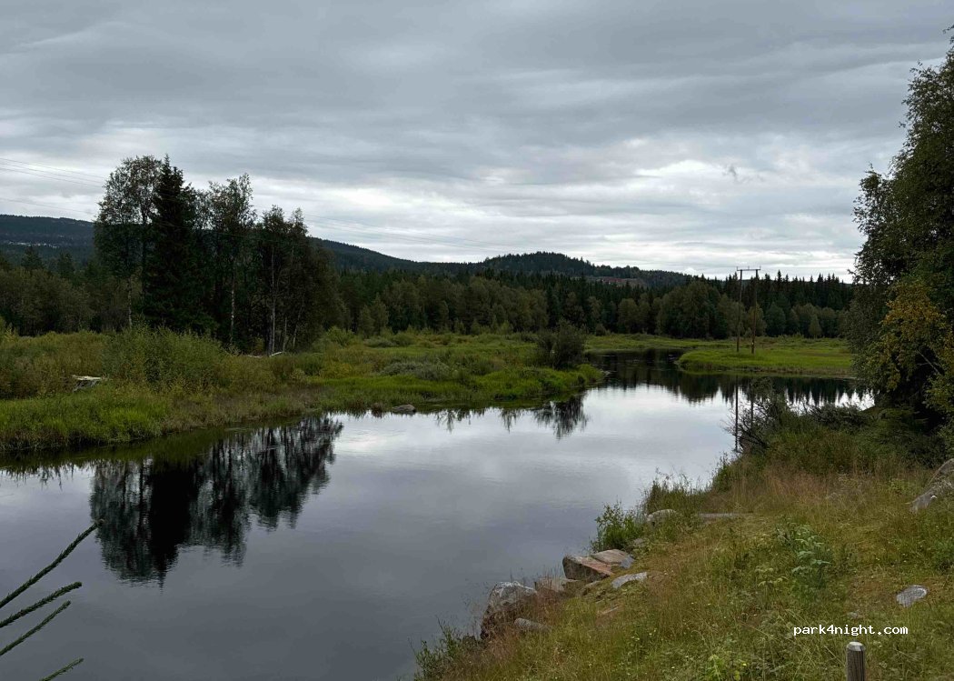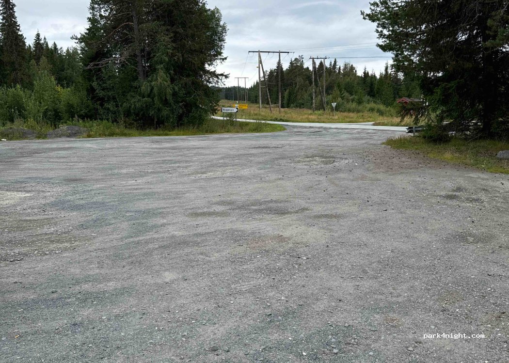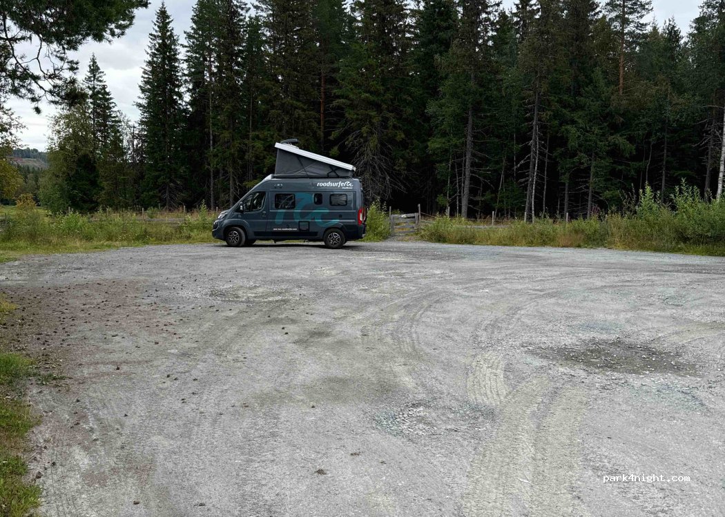 Großer Parkplatz für mehrere Fahrzeuge direkt an der Straße. Kein Service, keine Mülltonnen. Wanderweg und See in der Nähe. Die Straße ist Tagsüber gut befahren und nachts zu hören. Schotterplatz mit teilweise ebenen Untergrund. Keine Verbotsschilder