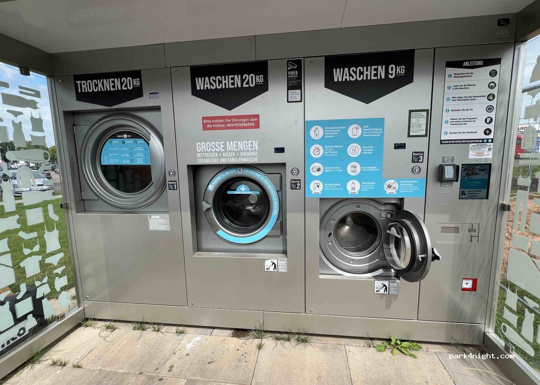 Alles funktionierte, schnell und einfach Wäsche sauber. Parken ging mit dem Wohnmobil neben dem Parkhaus auch ganz gut.