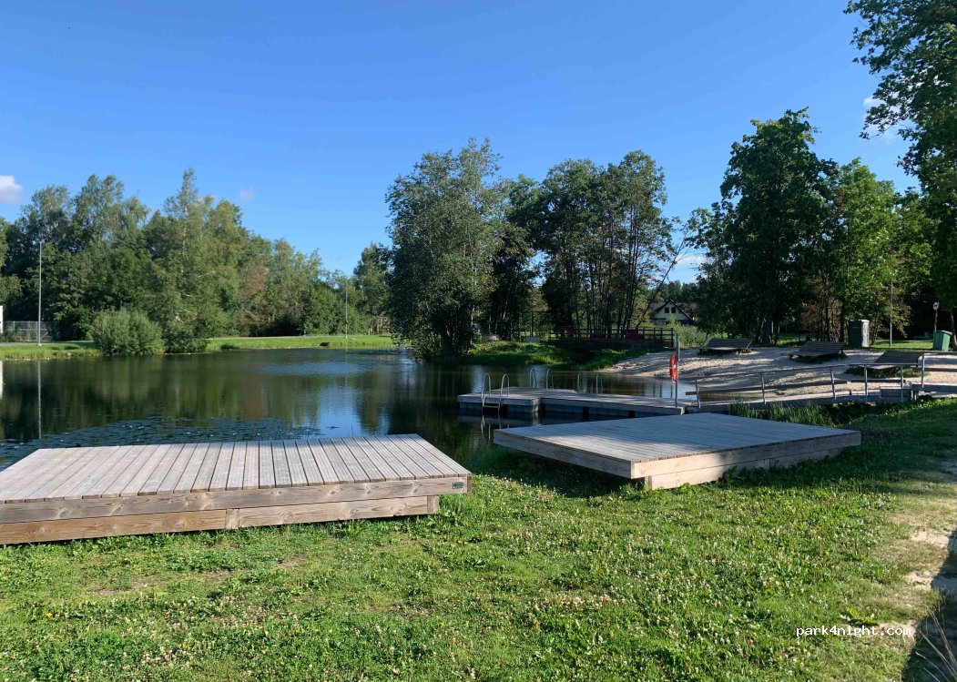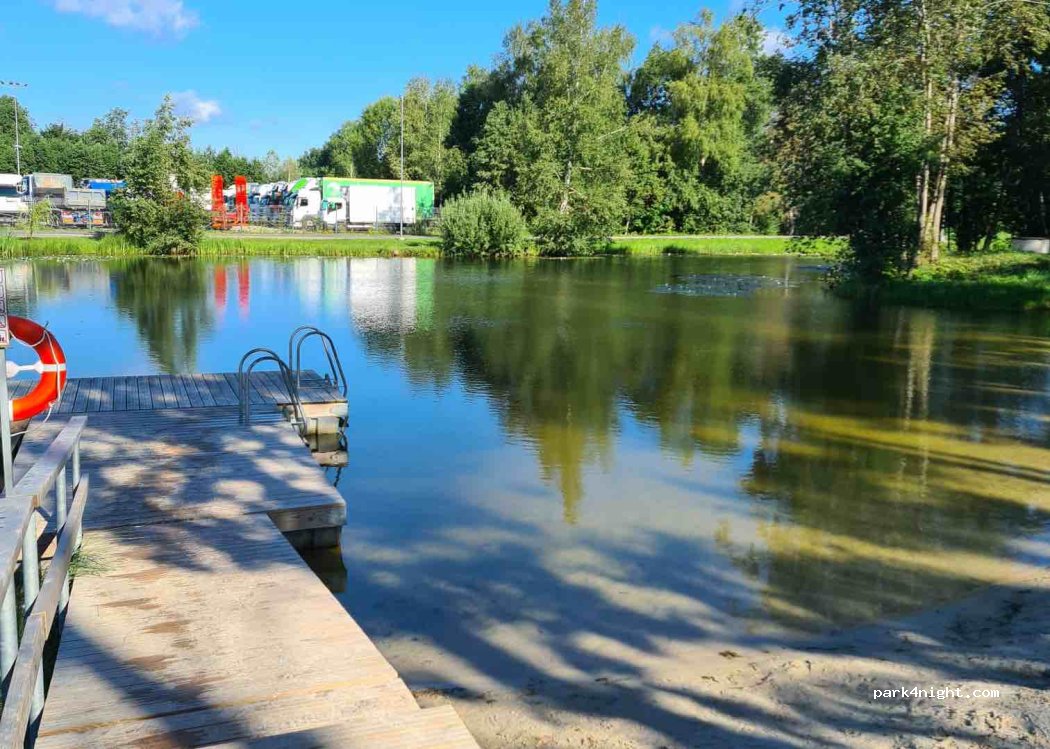 Nice place on a simple parking lot. We had a quiet night. No facilities but you can take a swim in the small water with a little beach next to the parking. On the other side there is a playground and skatepark only 100m away. The kids loved it here. So many nice local people here also! The kids played with other kids.