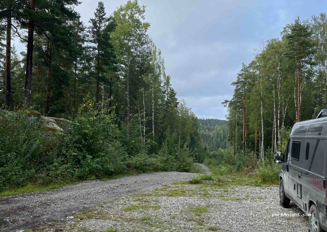 Spot (hard surface) along a road that seems to run around the lake. The road goes up and down well but definitely worth it. You don't hinder the traffic, are out of the wind and there is enough kindling for a fire. We stayed there for 1 night. Please take all waste with you. OLF ♥️
