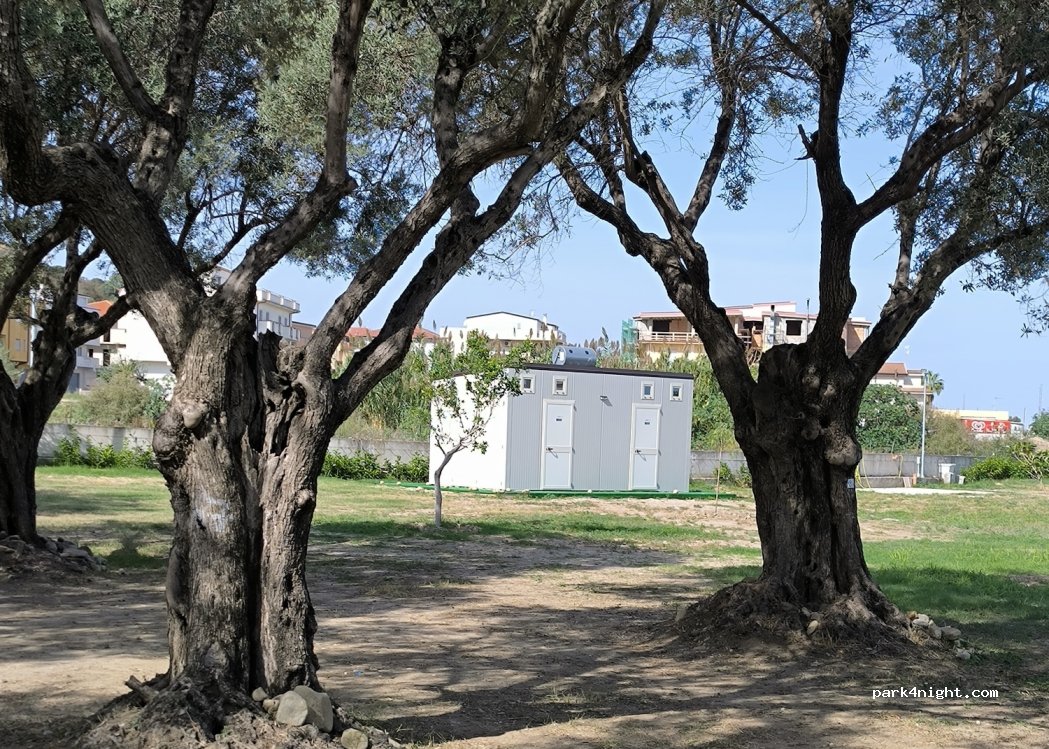 Camper area recently built. The gate is closed for security reasons but equipped with a video intercom, bell connected 24/7. The owner will answer you promptly also by phone. All services created with care and continuously improving thanks also to the passion of the owner Roberto. Water and electricity on site. External and internal showers with hot water, washing machine, sinks for dishes and clothes. In the shade of the centuries-old olive trees you don't even suffer from the heat because at least a little breeze always blows. Fenced land and video surveillance. Powerful and free WI-FI. 50 meters from a fine sandy beach very suitable for children and the elderly and for long walks with your feet in the water. A little further away, but still reachable on foot or by bike, to the north and south there are beaches with deeper waters. The sea is beautiful. On the seafront adjacent to the structure you can eat very well in various places. Award-winning ice cream parlors. Shuttle to the beautiful ancient village nearby. Supermarket 500 meters away, bakery and bar near the neighborhood Really friendly welcome, we immediately felt at home. We couldn't ask for more