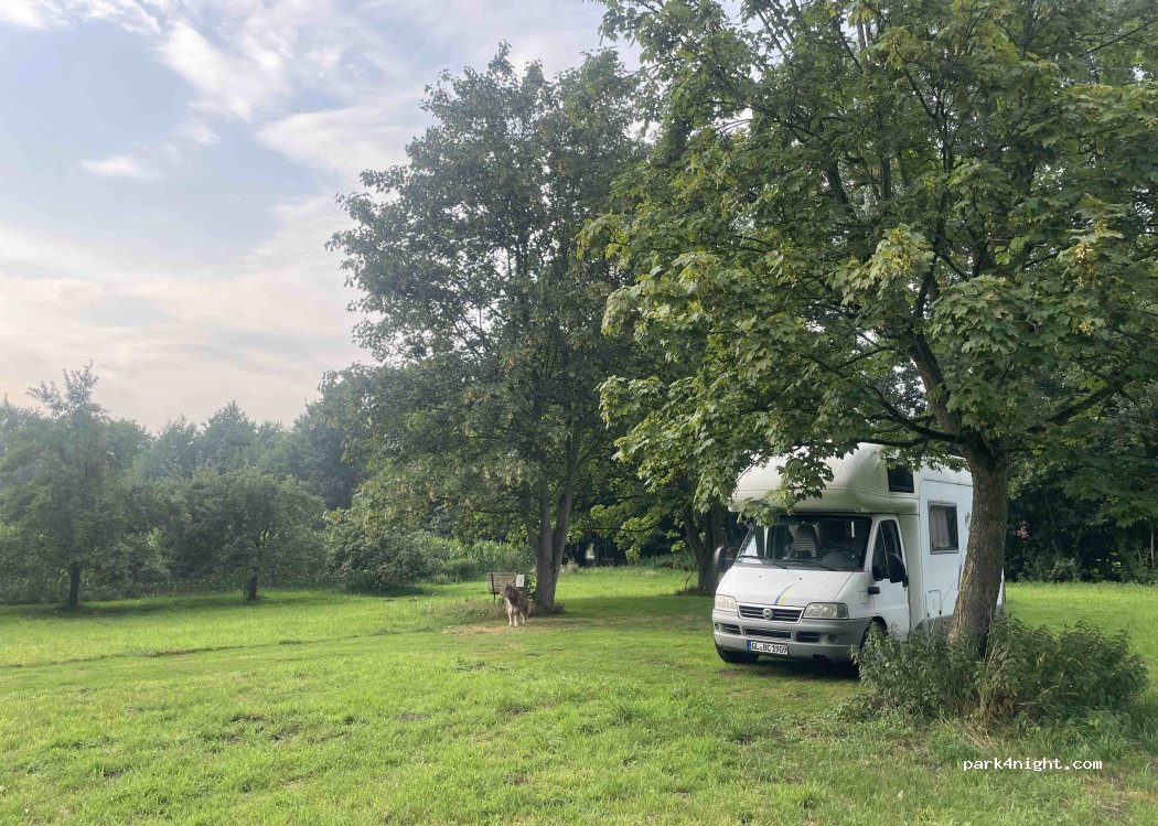 Absolut empfehlenswert: Umgeben von Wald und Wiesen stellen Tim und seine Frau einen Teil ihres Grundstücks (große Wiese) Campern zur Verfügung und das kostenlos, bei Bedarf kann man dann auch Strom bekommen...sehr herzlich. Wir, mein Vierbeiner und ich kommen bestimmt wieder.