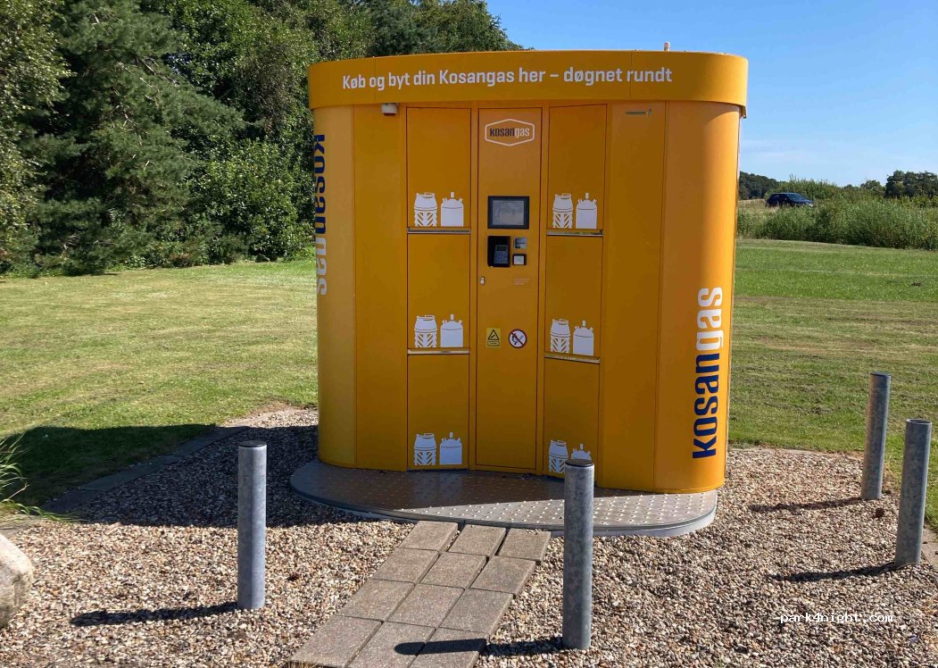 Bij het tankstation een punt om gasflessen te ruilen of te kopen. Bij het naastgelegen restaurant een mooie speeltuin en toiletten.