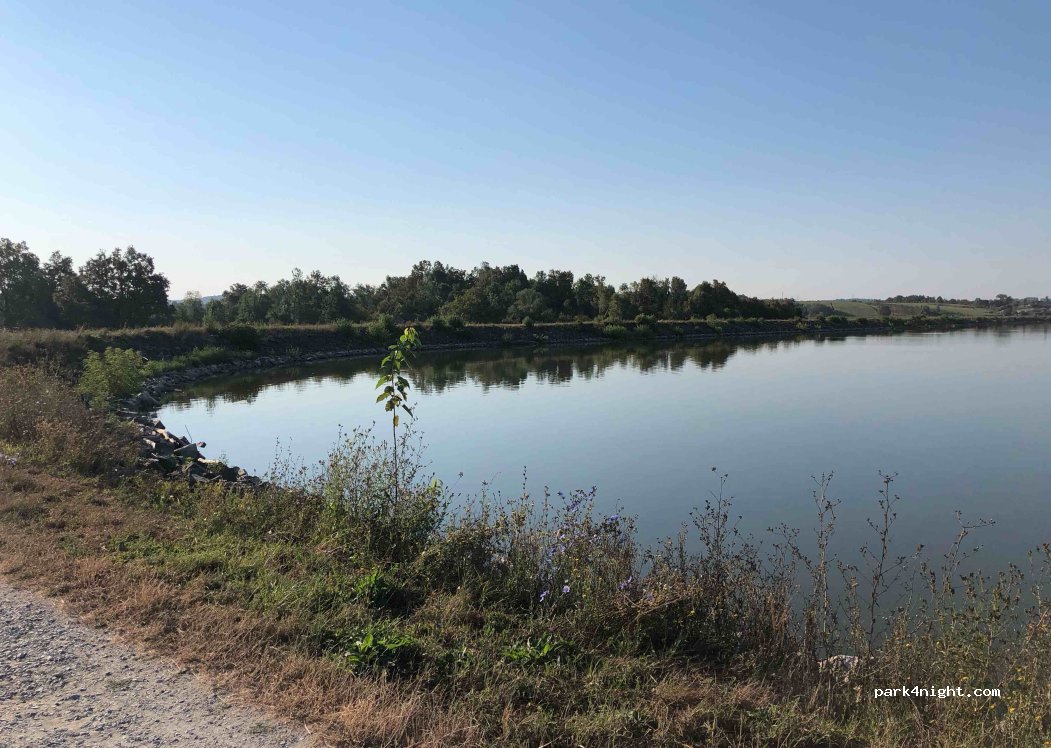Es spielt eigentlich keine Rolle ob der Platz an einem See liegt oder nicht - man sieht ihn wegen dem Damm sowieso nicht. Der Platz ist voll einsehbar, an 2 relativ viel befahrenen Straßen - wir haben uns einen anderen, ruhigeren Platz gesucht.