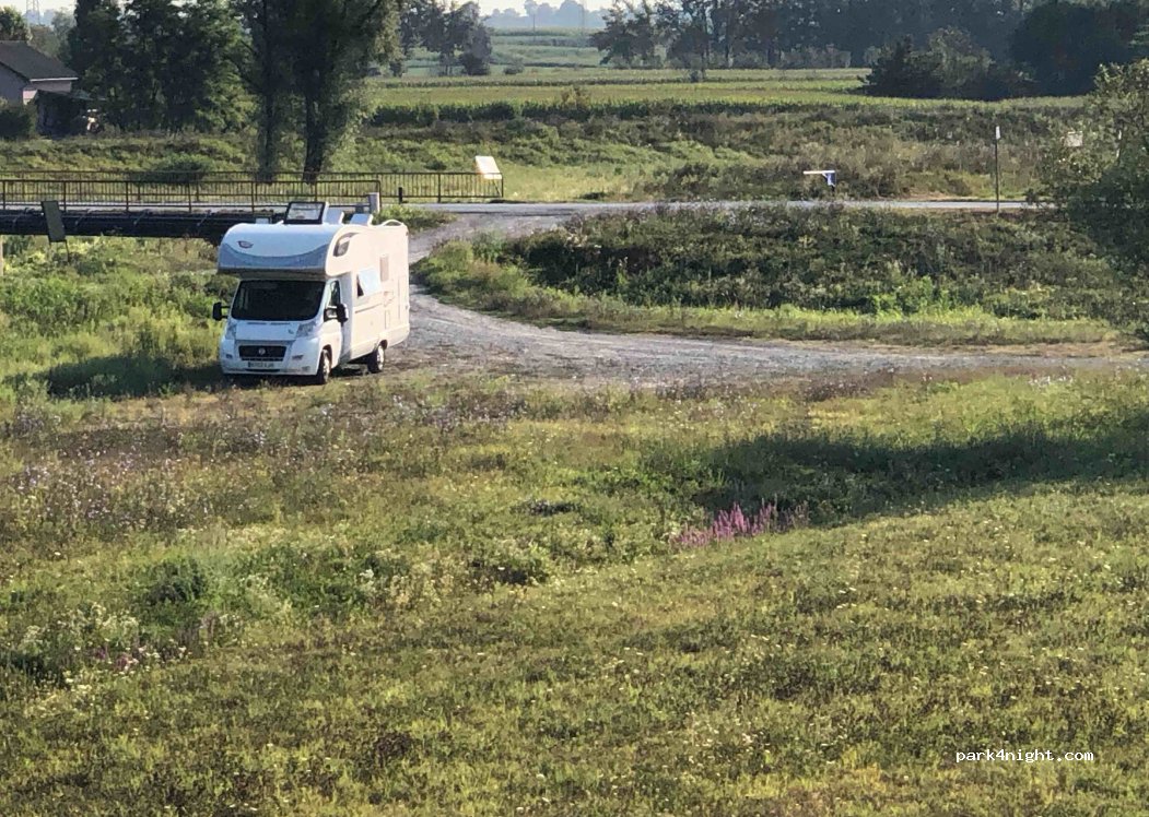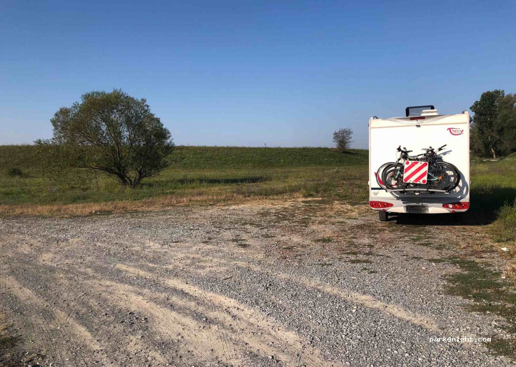 Ebene Freifläche am Ortsrand. Auch für sehr große Wohnmobile möglich. Fester Untergrund. Verkehr auf der Landstraße ab 5 h morgens hörbar, abends kommen ein paar Angler von See, nachts sehr ruhig. Wir haben auf der Durchreise hier eine Nacht allein gestanden und eine ruhige Nacht verbracht.