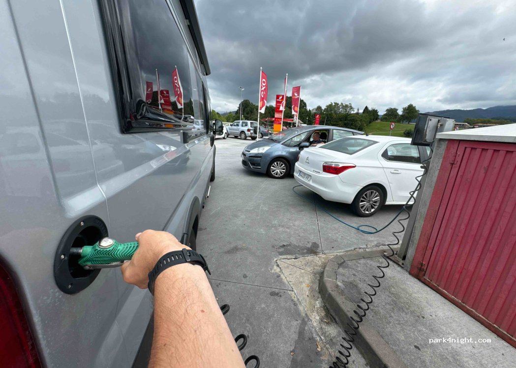 Endroit parfait pour faire le plein de carburant et d'eau. Le tuyau d'eau se trouve juste à côté du gonfleur, il y a suffisamment de place pour se garer à côté.