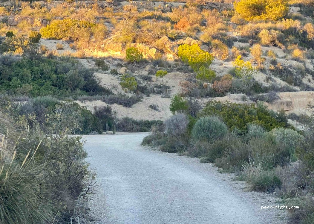 Chemin chaotique il ne faut pas être regardant sur la carrosserie atention branches basses super pk a 20m a pied de la plage la plus proche mais beaucoup de gens "rode" autour des véhicules et lors de notre retour de plage nous constatons que notre AC a été visité nous avons donc décider de dormir en sécurité au sunbeach un super camper Park avec des gérants bienveillant et proche benidorm centre