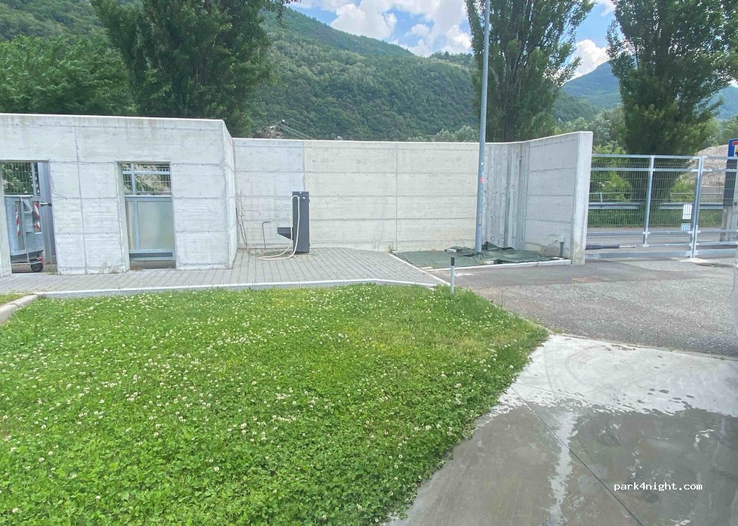 ad oggi area aperta , carico scarico elettricità tutto a 12 euro , posto tranquillo , per accedere bisogna telefonare x avere codice da digitare sulla pulsantiera numero di telefono.