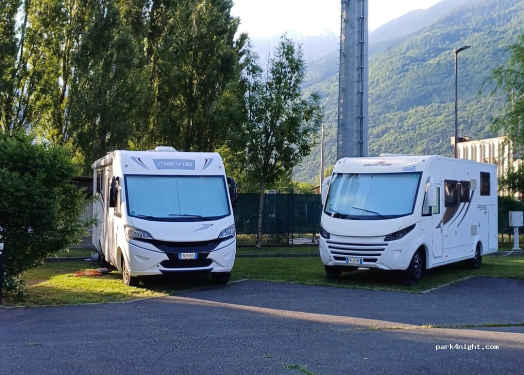 area sosta in posizione tranquilla,il centro di morbegno dista circa 1,5km. ben tenuto a prezzo onesto ad oggi 15euro con tutti i servizi. corrente,acqua,carico e scarico,doccia e lavandino per stoviglie con acqua calda . tutto compreso. un graxie anche alla bella gente abituièe