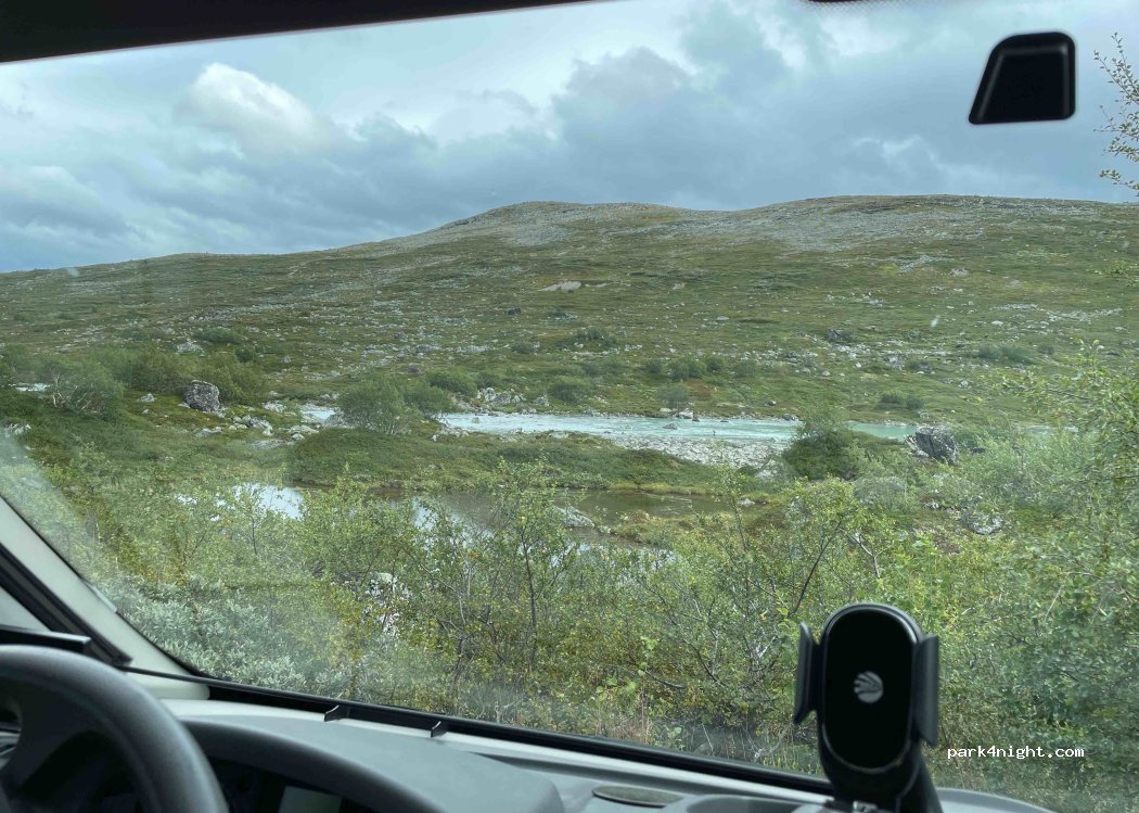 Un endroit magnifique et calme au bord de la route panoramique. Vue sur le lac et les montagnes, neige et possibilités de randonnée. La route 258 est fermée la majeure partie de l'année. Vérifiez à l'avance si la route de gravier est ouverte. La route n'a qu'une seule voie, desservant les deux sens. Les possibilités de dépassement sont limitées. Préparez-vous à faire marche arrière sur un long tronçon sinueux.