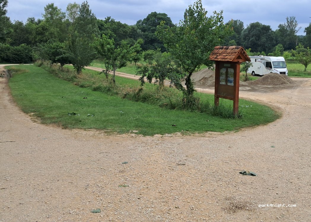 Parking sans service Personne sur ce lieu ce jour nous avons stationné sur le chemin après la pluie impossible de se mettre sur l'herbe Le temps d'aller visiter le village et sommes partis À voir si autorisé la nuit Il y a une Aire de service payante autour du site