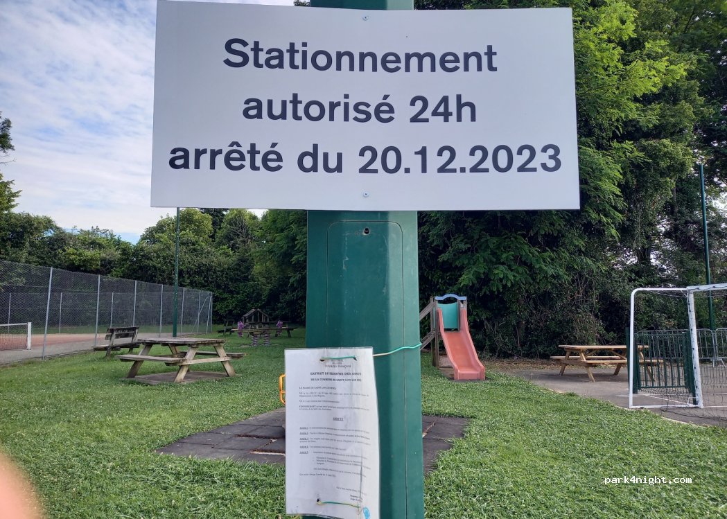 Bon spot pour une nuit en van. Pas de limitation de hauteur, toilettes disponibles sur place. Pratique et tranquille.
