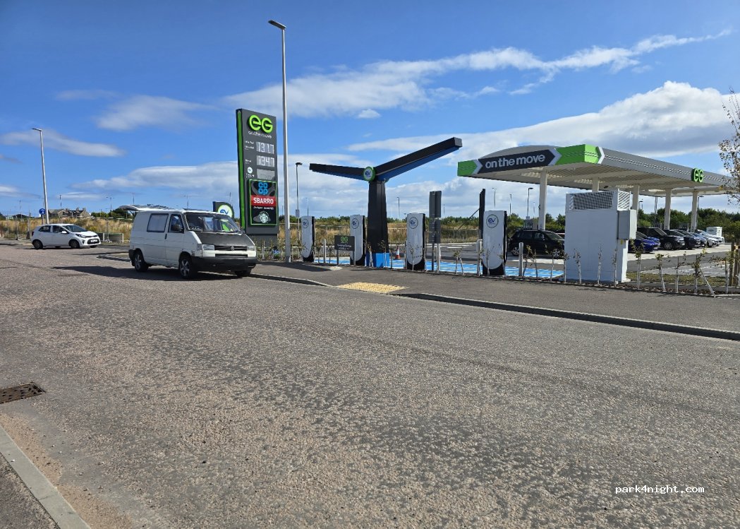Off the A92, this service station is virtually brand new (August 2024).