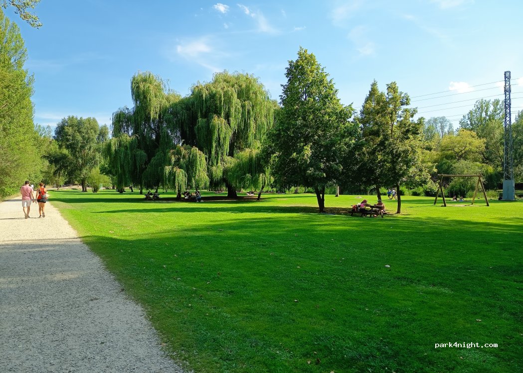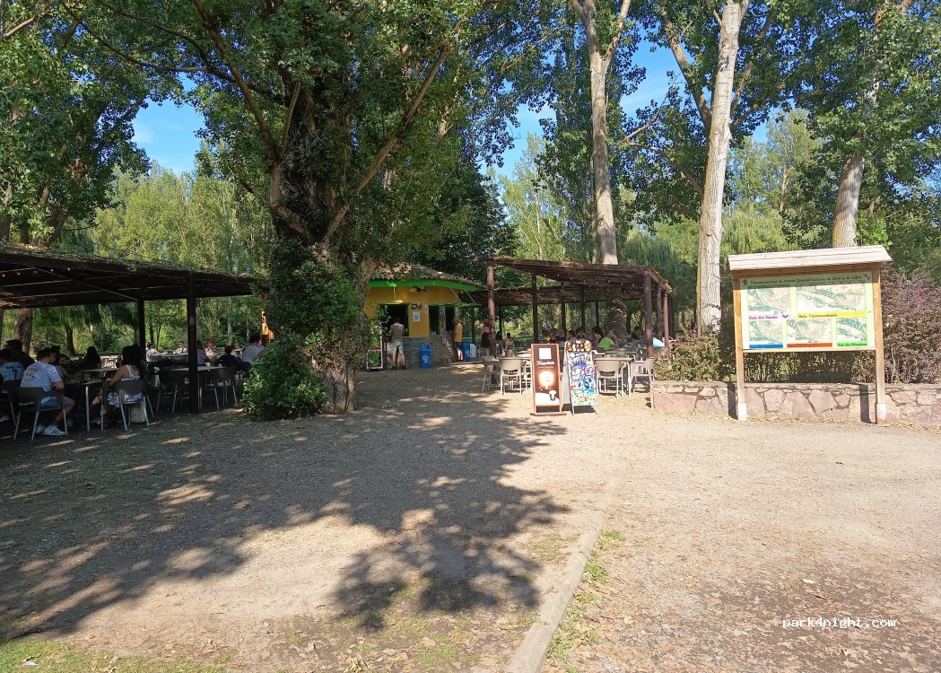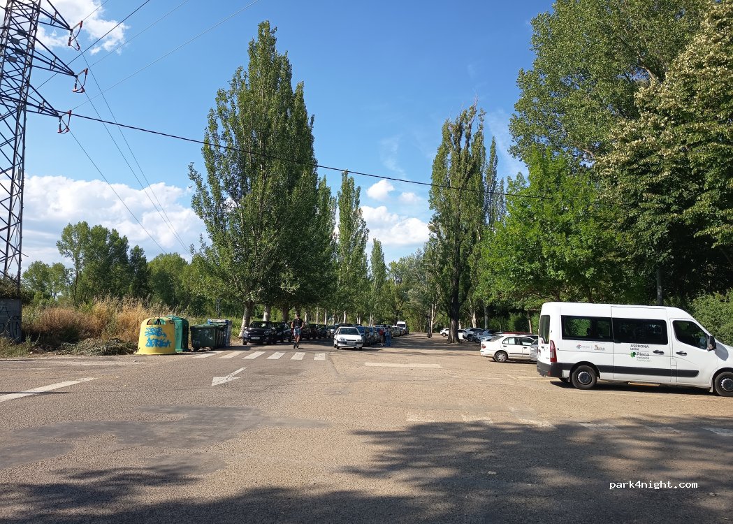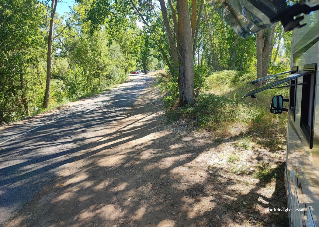 El sitio es bueno para aparcar, al lado de un parque con agua potable, duchas tiene mesas de picnic dentro del parque y un bar. Sombra y tranquilidad