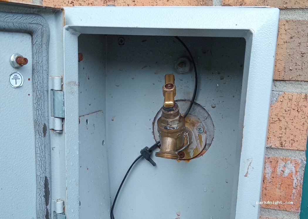 Très bon endroit pour prendre de l’eau le gérant pas au courant du robinet (?) il est à gauche du garage à côté de la porte anti feu dans un boîtier gris dont la porte est poussée