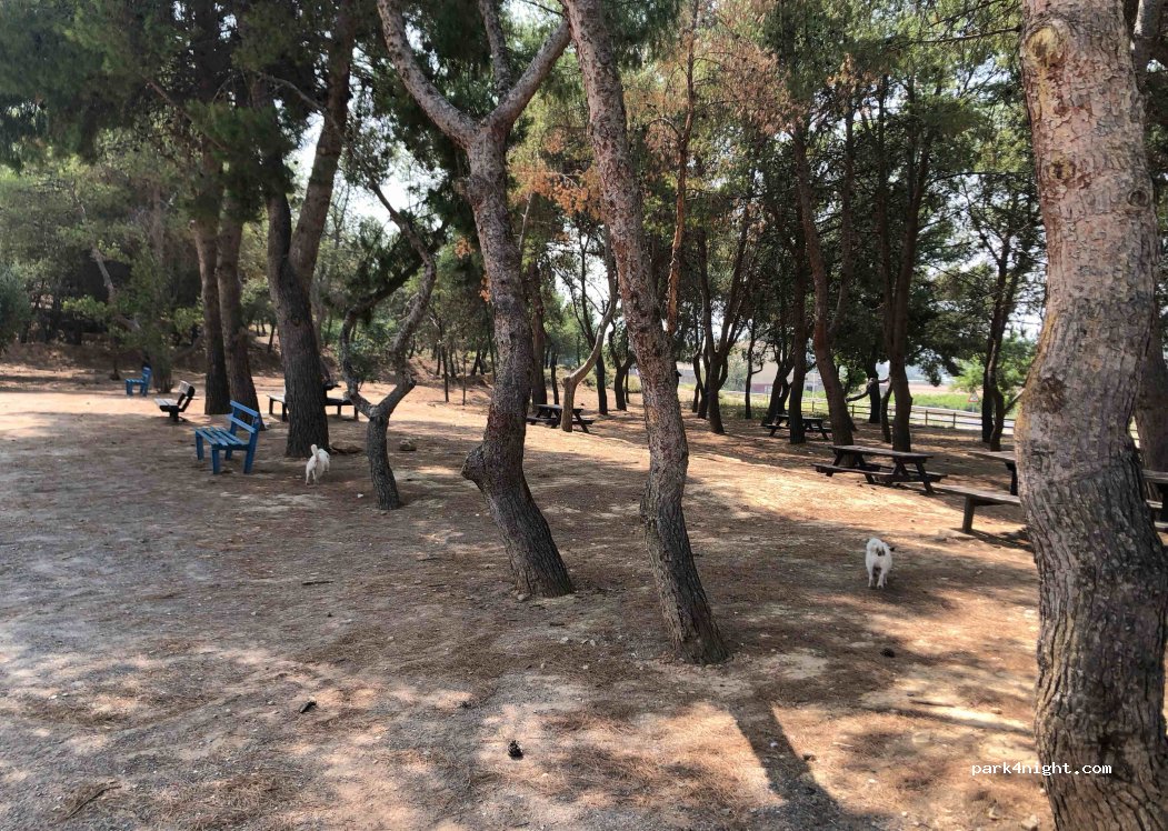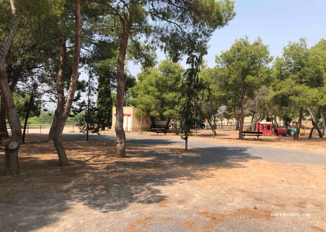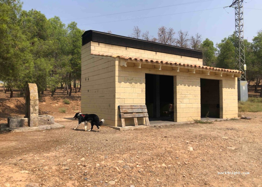A stop with shade, barbecue and picnic tables. We were with the dogs among pine and olive trees. If you come with children, there is a playground with a fountain. The barbecue area has a fountain with non-drinkable water.