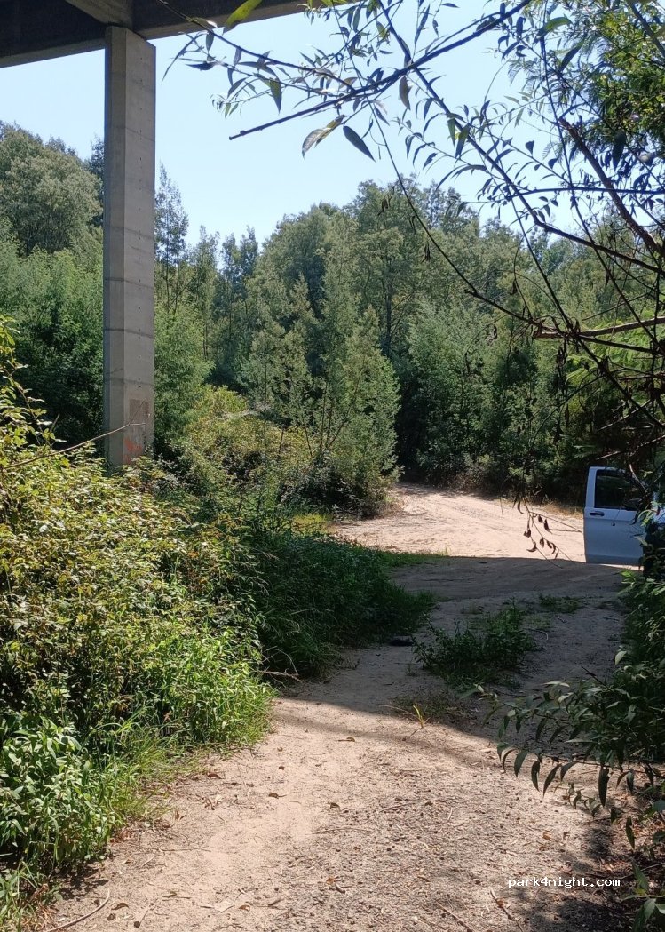 Bien pour dépanner, belle promenade entre les Eucalyptus, baignade pour le chien (ou les adeptes des plantes aquatiques) plutôt adapté à la pêche qu'à la baignade. Ombre grâce au pont où passent beaucoup de voitures (bruit constant) et énormément de déchets et de cacas + PQ. Plusieurs endroits où se garer. Ok camping car, demi tour possible, pente assez chaotique.