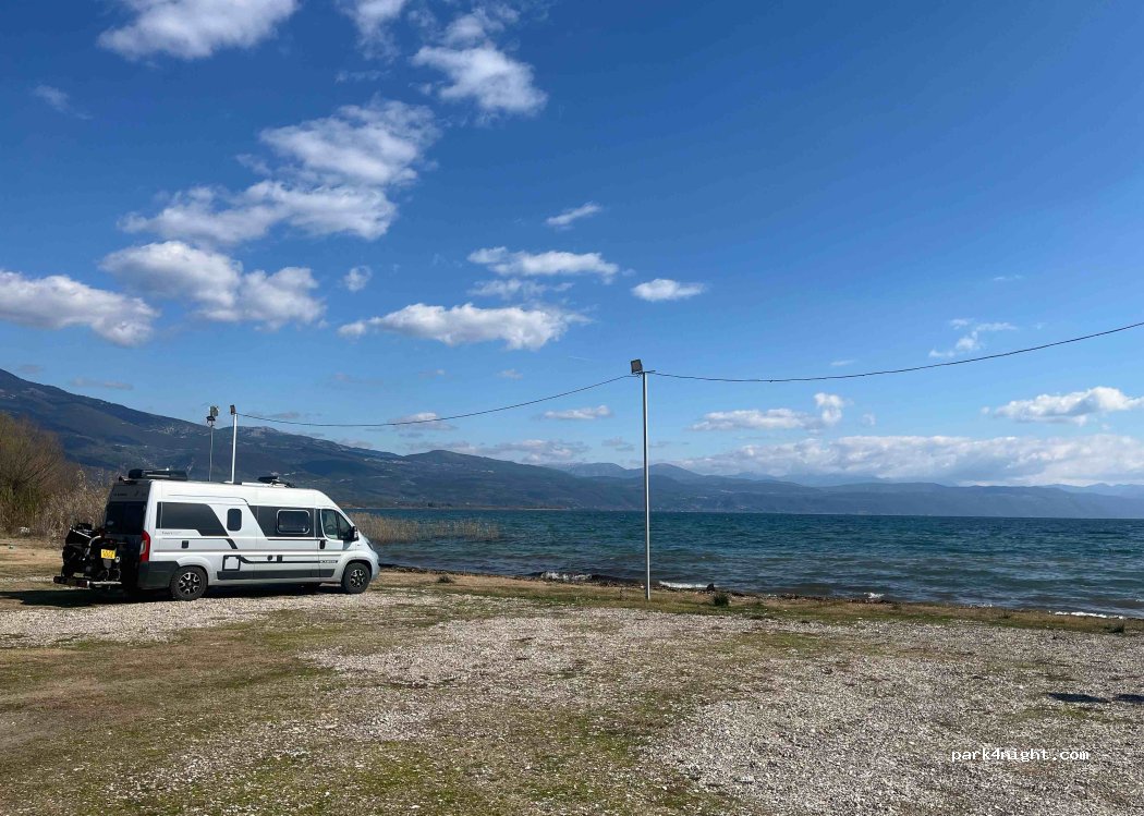 Prachtig zicht op Lake Trichonida. Je profiteert van de nachtbewaking van het restaurant. De eigenaars zijn zeer gastvrij ten aanzien van campers. Wij hebben er lekker gegeten voor een goede prijs.