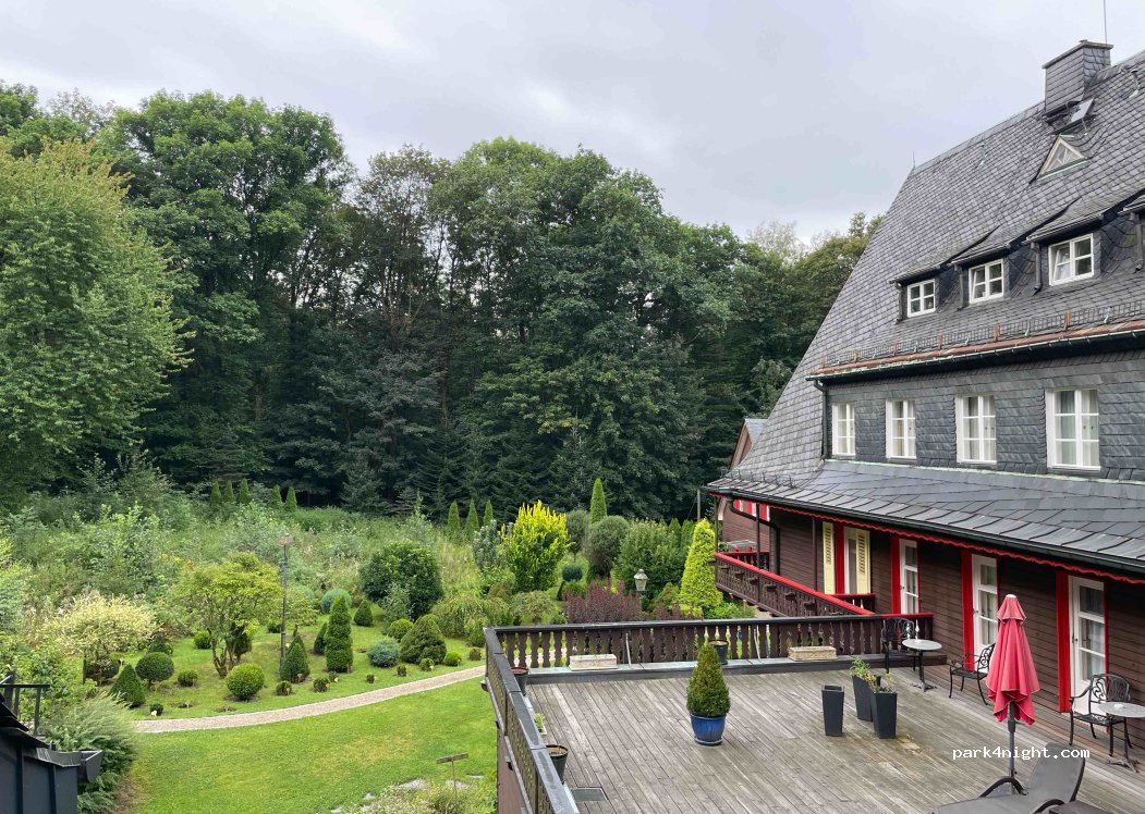4 belles places de parking sur le terrain du Romantikhotel Jagdhaus Waldidyll. Vous vous trouvez entouré de forêt et/ou avec vue sur le jardin. Offre avec eau et petit-déjeuner sur réservation
