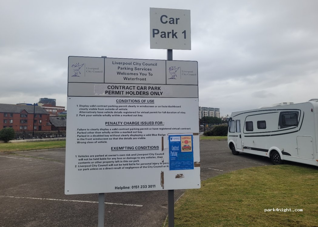 Great city centre park up for visiting Liverpool. Could not be better situated for visiting docks exhibition centre or city centre attractions. No services and £27 per 24 hours but still great and safe overnight parking in a lovely situation for a city centre.