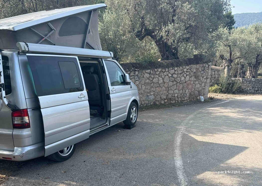 Am Straßenrand. Sehr ruhiger Ort. Nachts ein paar vorbeifahrende Autos. Nicht störend.