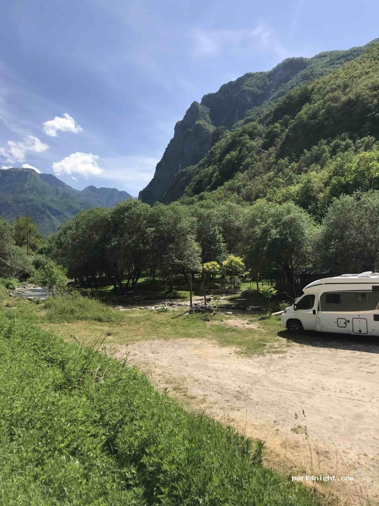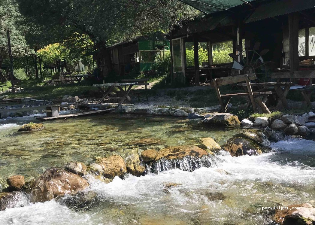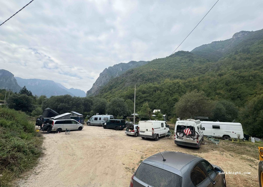 We are here just now and what an amazing beautiful setting at the side of Bascica river, very friendly Father & son hosts who will cook you fresh trout and serve cold beer, great park up if you want peace and quiet where the only sound is the babbling river