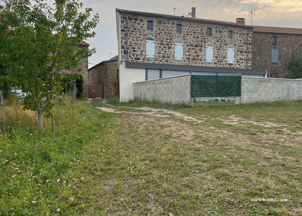Parking, jolie vue, dans un champ d’Herbe, vis-à-vis des maisons aux alentours. Tranquillité, accès toilettes dans la commune vers la mairie.