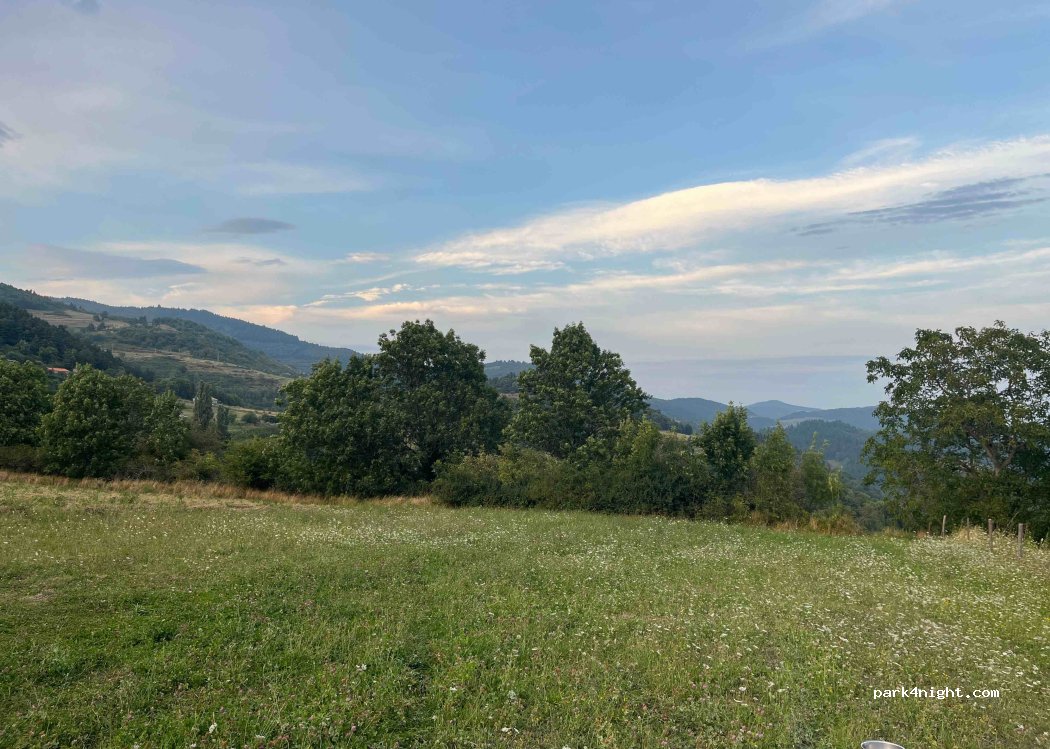 Parking, nice view, in a field of grass, opposite the surrounding houses. Peace and quiet, toilet access in the town near the town hall.