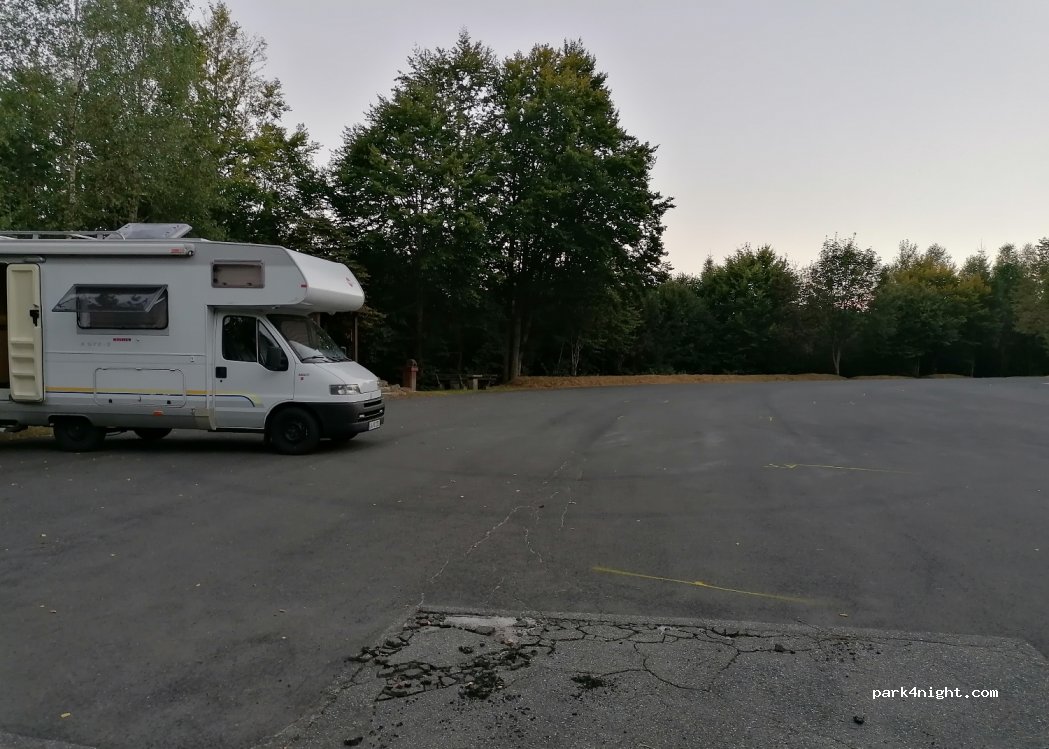 Parkplatz direkt an der Straße, aber die ist Nachts kaum befahren. Der Zugang zum Gaisweiher ist kostenlos. Toiletten und Duschen sind dort vorhanden. Toller kostenloser Platz für eine Nacht.