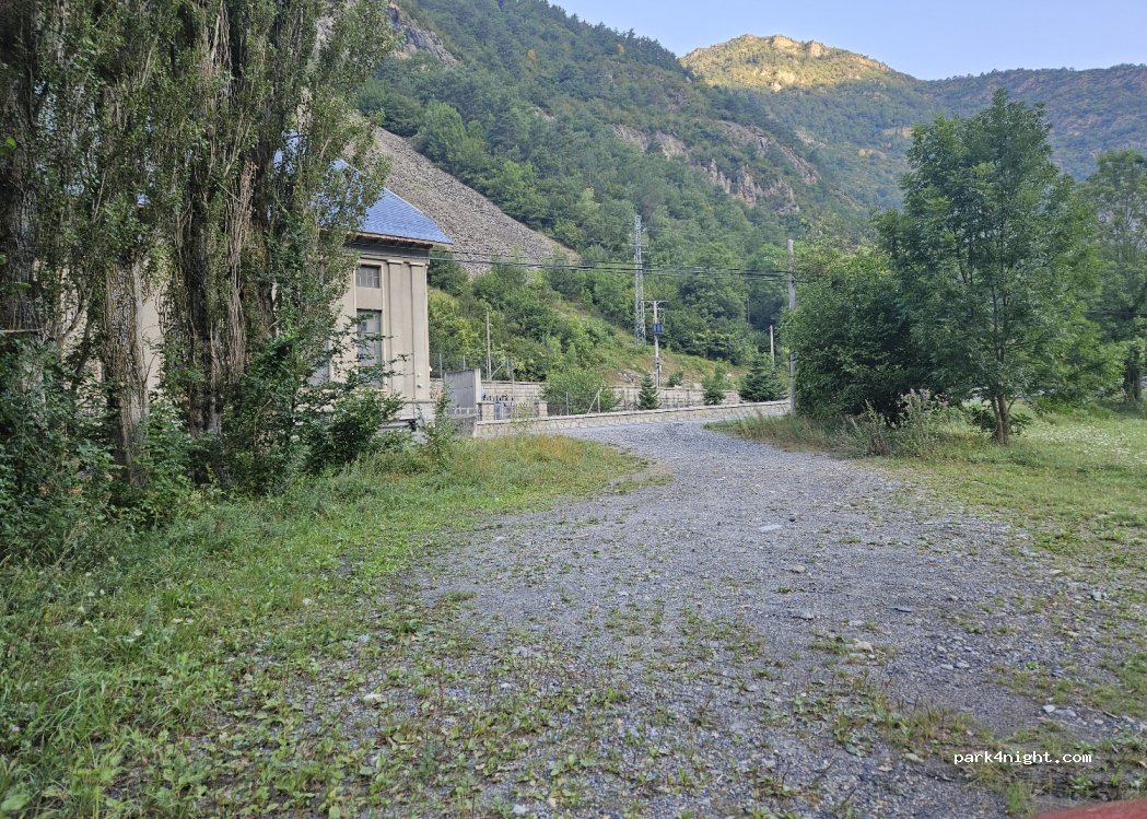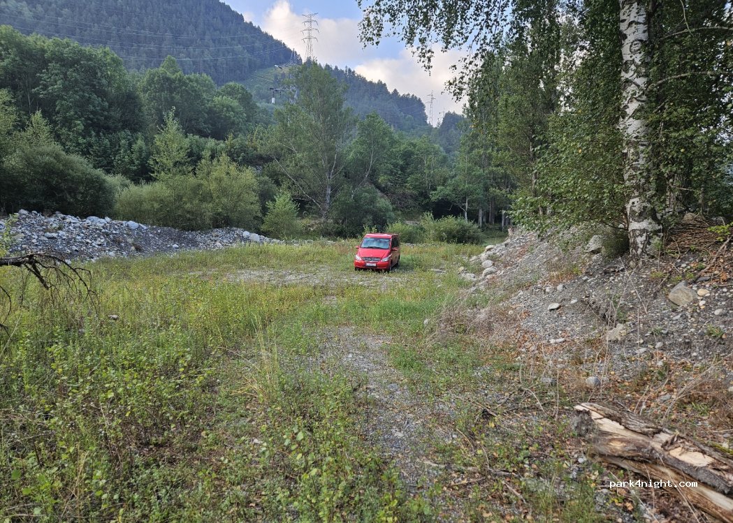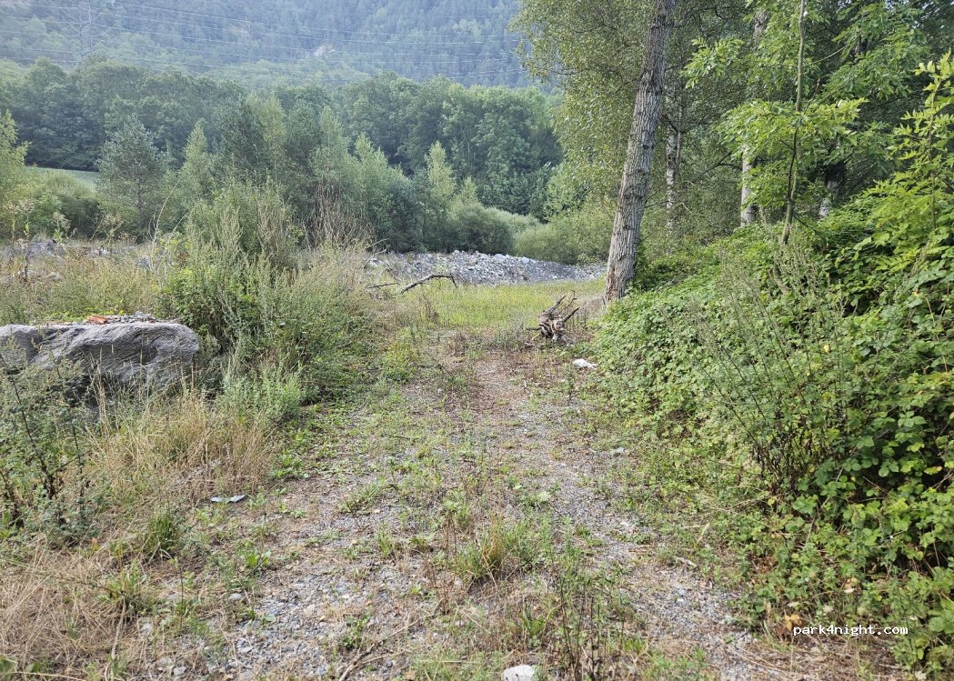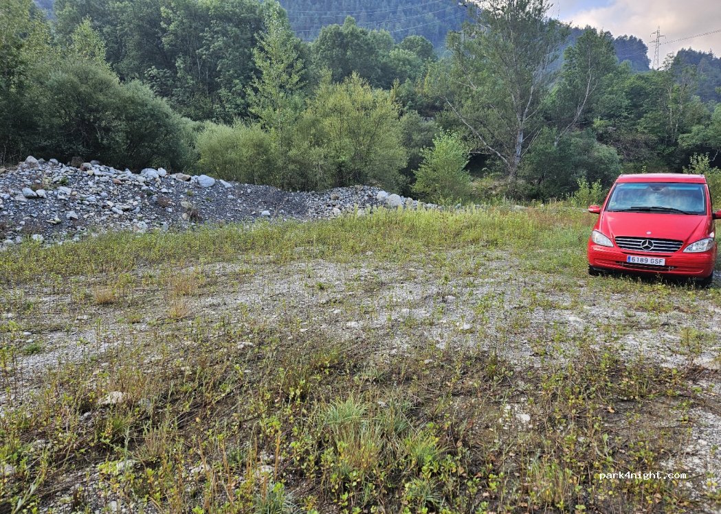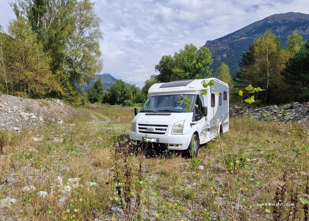 Très bel endroit au bord du torrent , continuez 50 sur le chemin pour y arriver, emplacement pour 2/3 petits camping car . Attention zone inondable