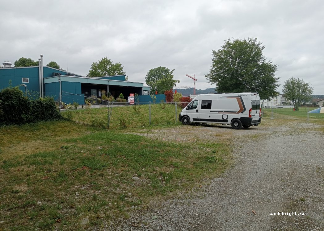 Geschotterter Platz neben Frei- und Hallenbad. Bezahlung an der Badkasse. Während den Öffungszeiten können WC und Duschen benutzt werden. Es hat auch ein kleines Restaurant.