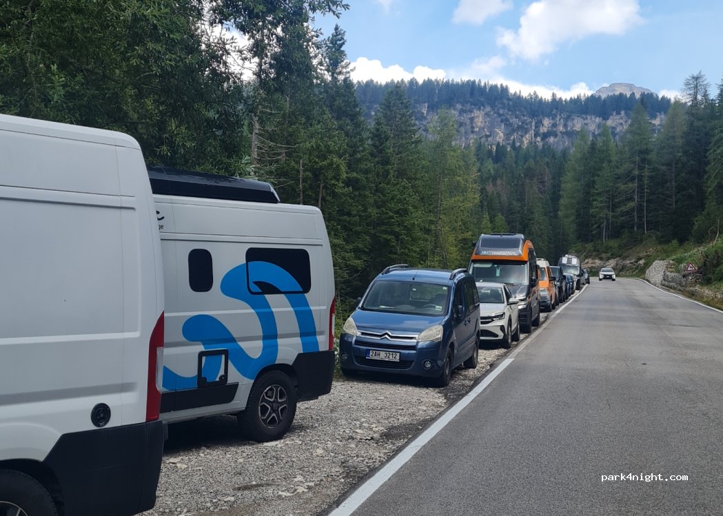 Plusieurs places au bord de la route. Certaines sont plates. Idéal pour se garer pendant la journée et visiter le lac de Misurina (2 km)