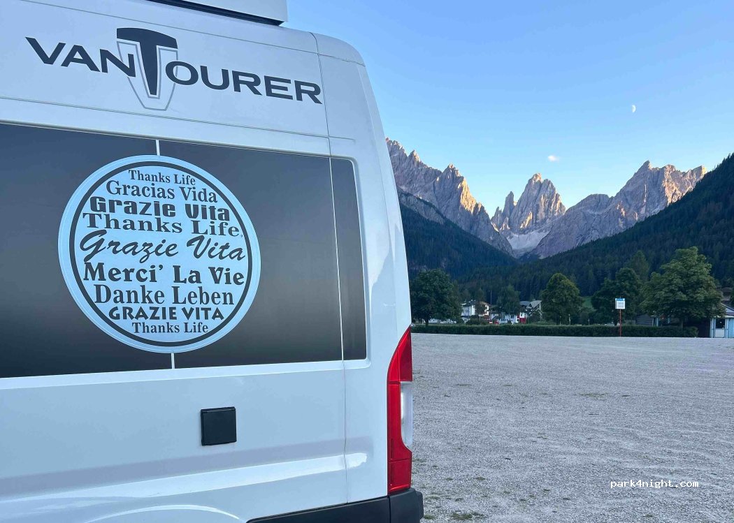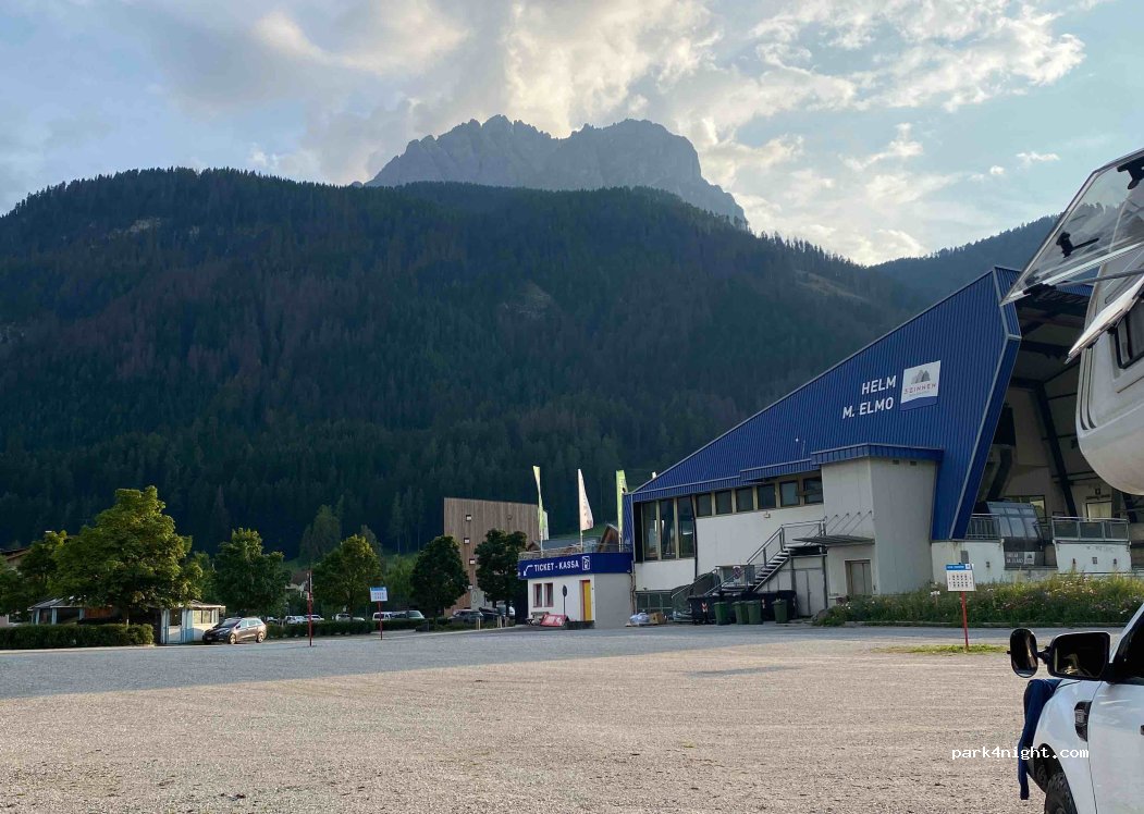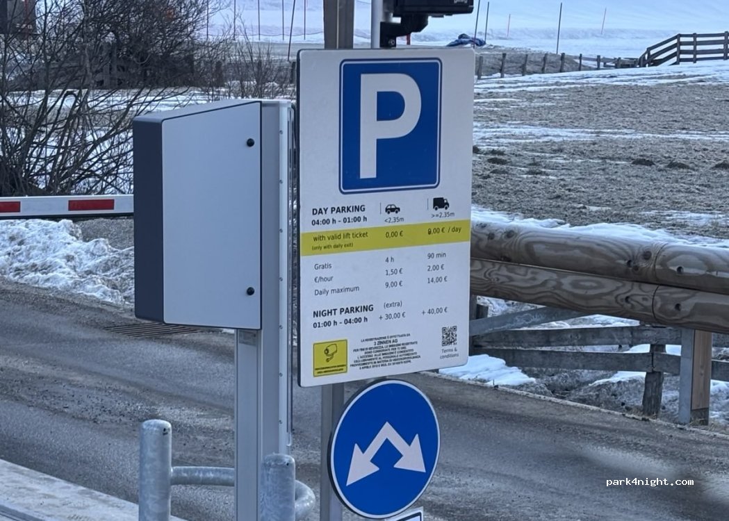 Now it is possible to park during the night, but for 49€, which is highly overpriced if we consider no services for campers. Very close to gondola.