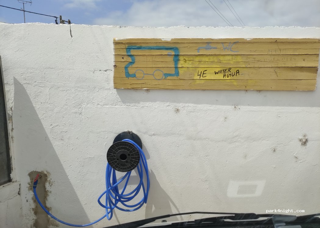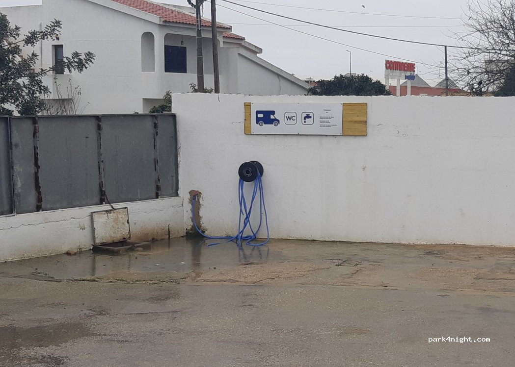 Sono andato per far carico scarico, si trova presso la stazione di servizio adiacente al Lidl che ha già di suo un parcheggio riservato ai camper! Non ho fatto carico scarico perché dove si scaricano le acque chiare è un posto schifoso e sporco, tornerò a Faro all’Intermarché,che è pulitissimo (e costa la metà)!