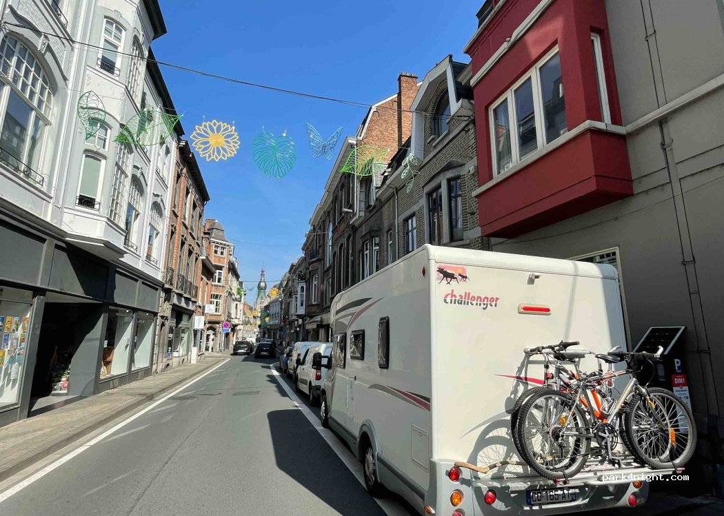 Parking de ville dans la rue, camping-car non explicitement interdit. 30mn gratuites puis 50 centimes par heure… largement suffisant…