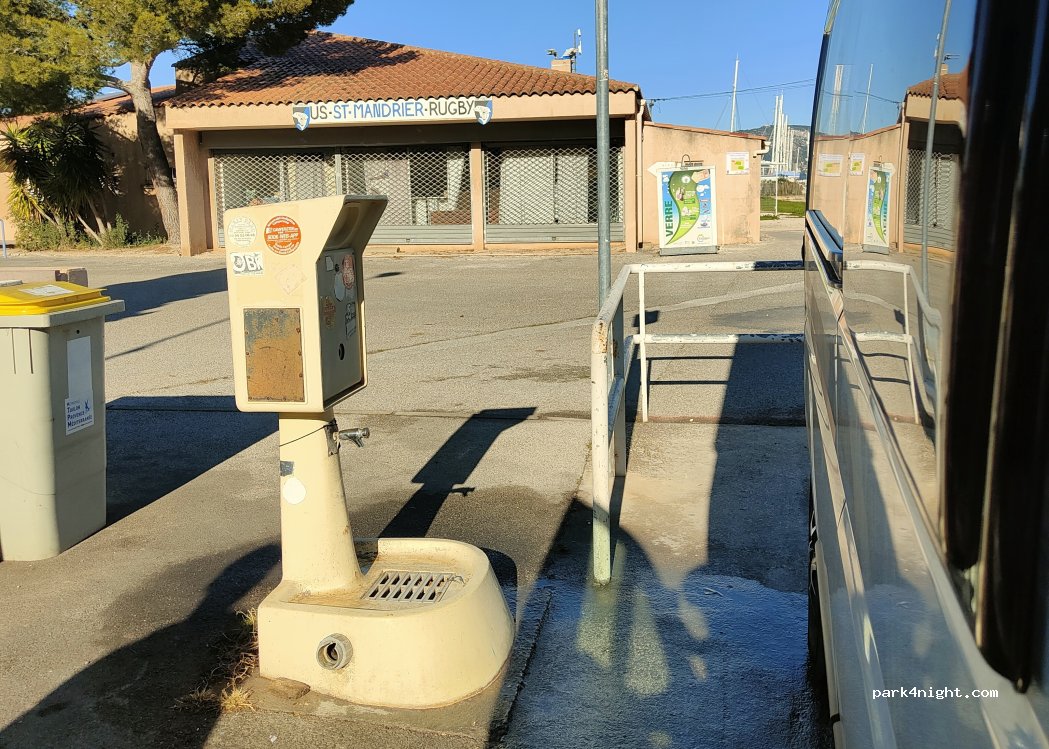 Aire de chargement/déchargement des eaux noires et grises très pratique et chargement d'eau à quelques mètres il y a un parking camping-car mais seulement 6 places disponibles
