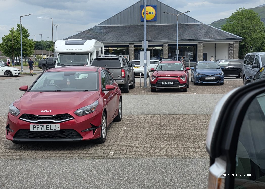 on y a passé 2 nuits pour faire le voyage à bord du Jacobite train. Merci à Lidl de nous accepter. on a ,bien évidemment, fait nos courses ici pour les remercier.