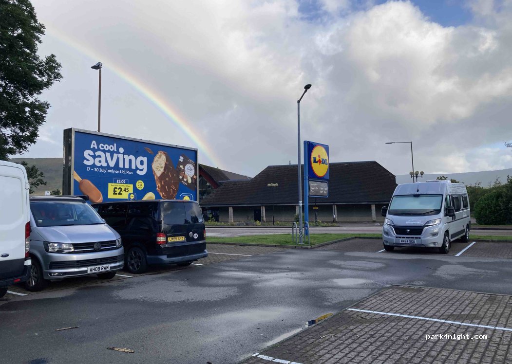 There's limited overnight parking in this area so thank you lidl for putting up with us - would recommend asking in store before hand or arriving super late/leaving early. Don't block the billboard from the cleaners!