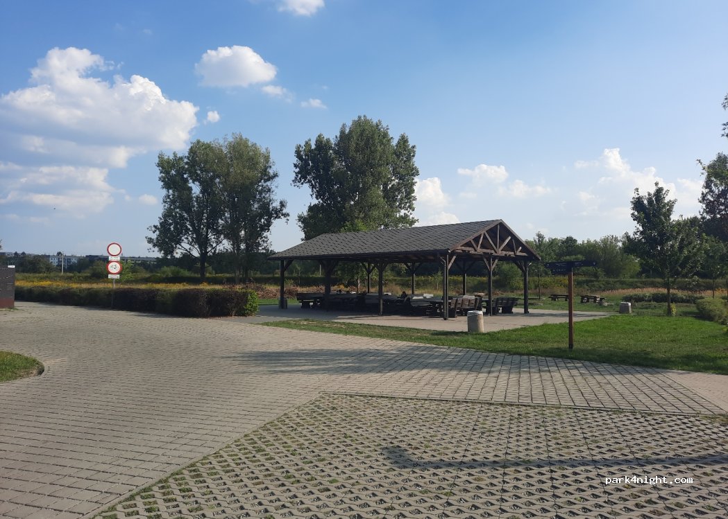 Free parking spot near public beach. Access to free toilets in near restaurant. Kids playgrond, service spot for bikes at place. Good place to stay and visit Pogoria lakes on foot or bike (aprox 15min from park spot). There's public bus spot near parking.