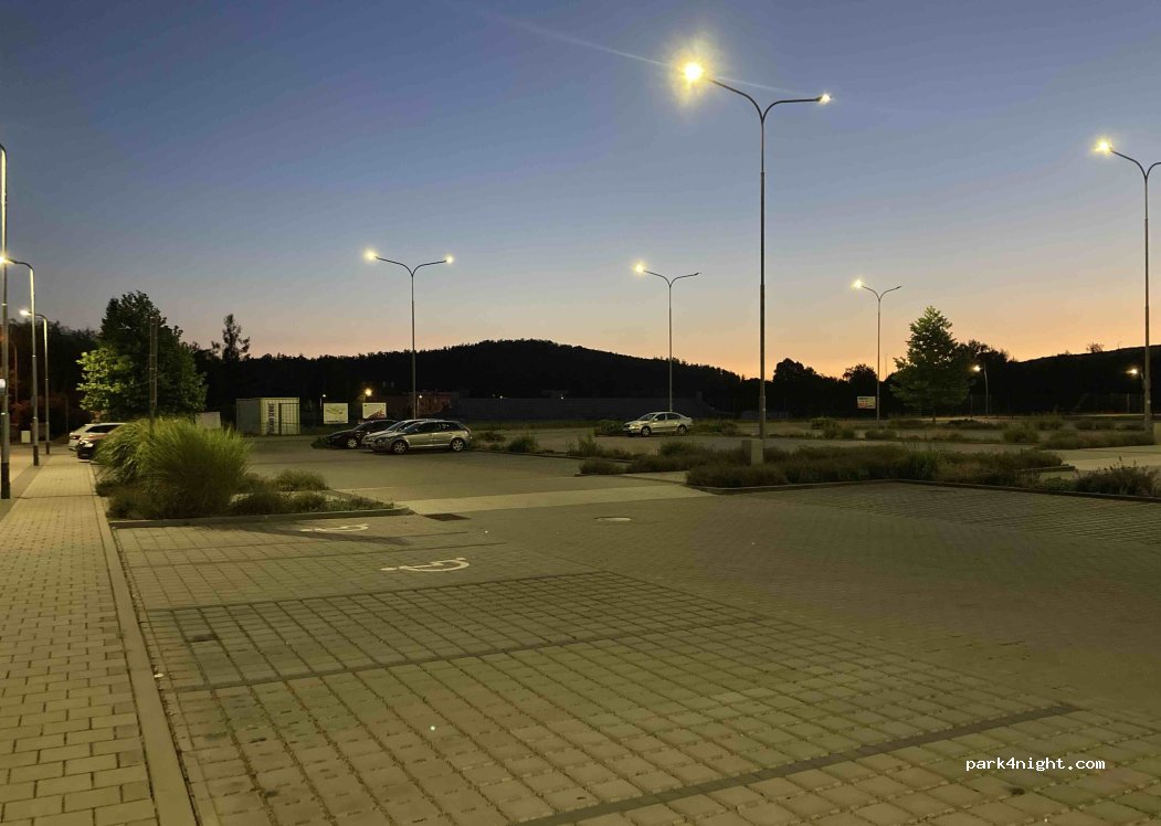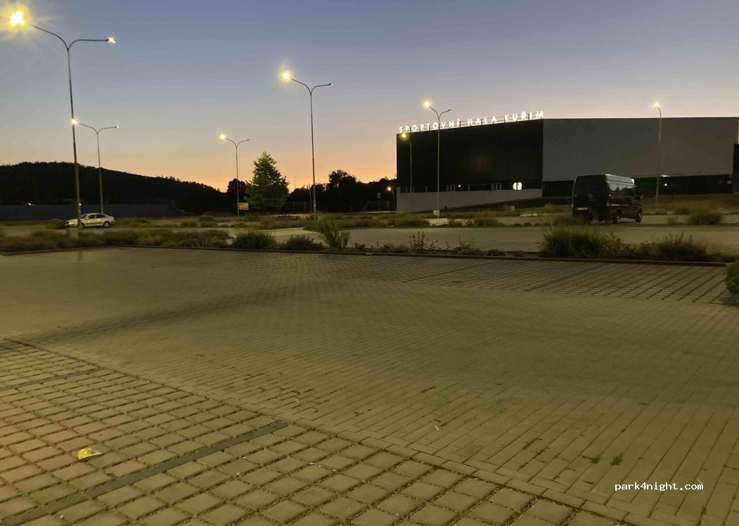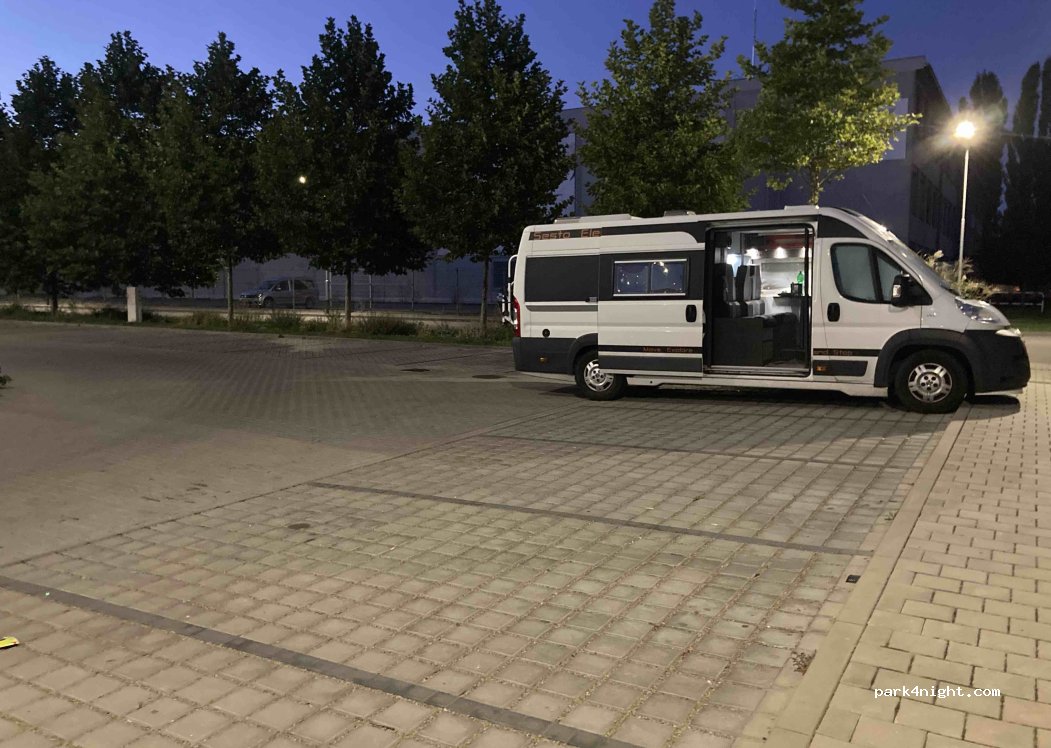 Parkplatz neben dem Sportzentrum. Schwimmbad in der Nähe