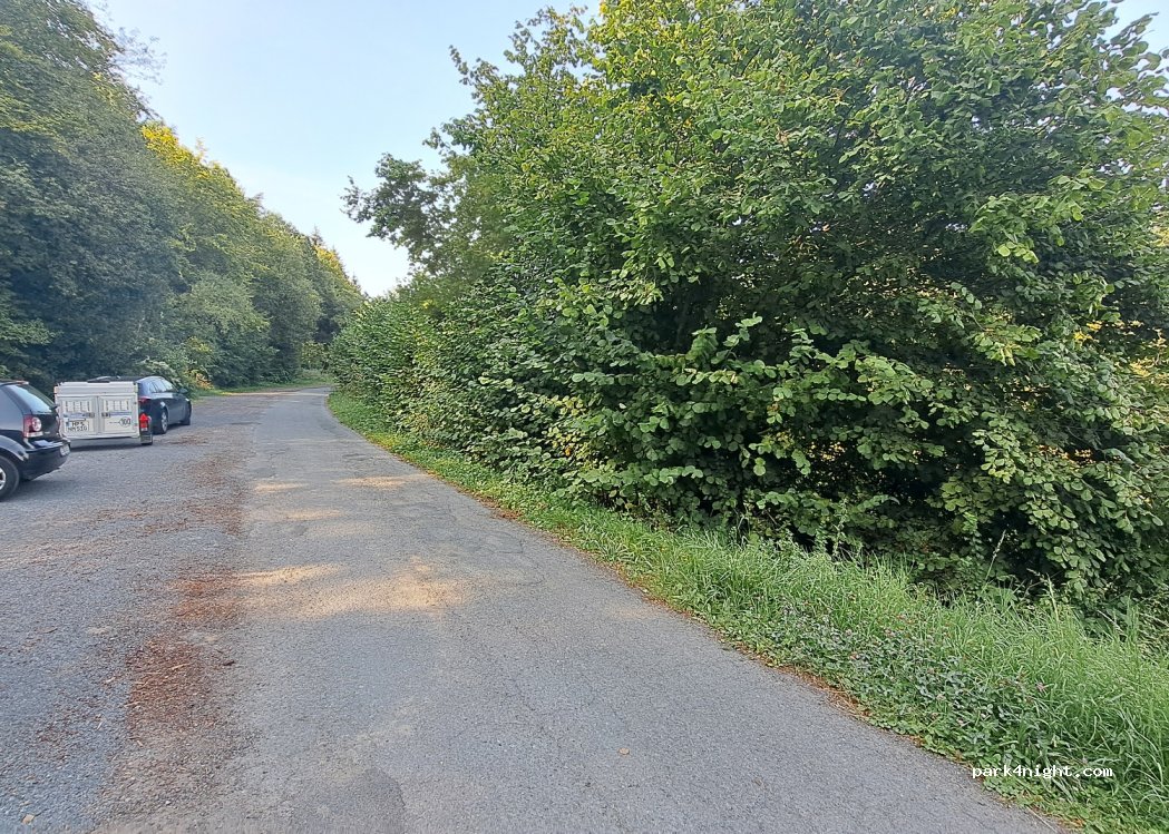 Aparcamiento al borde del bosque con vistas a Bullau.